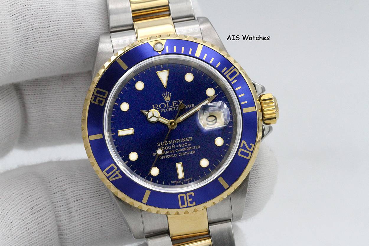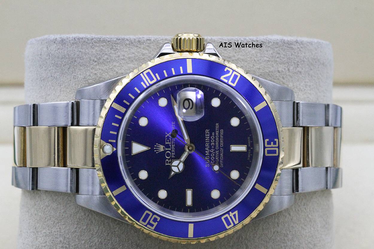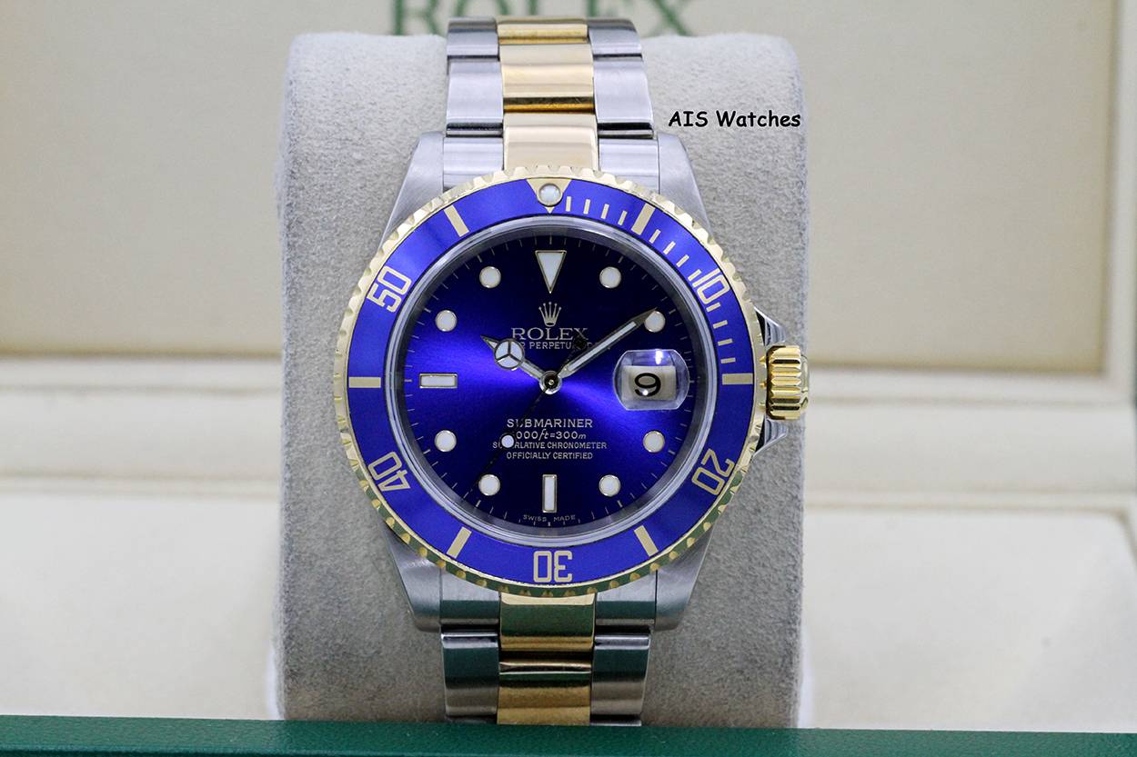 | Rolex Submariner 16613 Watch Two Tone 18k Gold/SS-Blue Dial-Blue Aluminum Bezel precioustimepieceandco (895) |
