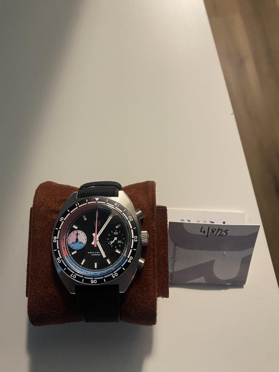 REPOST: Up for sale today is my like new Stratton Yatch Racer Quartz . Fun chrono that can track another time zone or count hours elapsed. Hoping to find a new home for it. Specs (from Straton): • Case Material - 316L Stainless Steel • Case Size - 42mm • Lug To Lug - 48mm • Case Thickness - 12mm • Lug Width - 20mm • Movement - Miyota 6S21 Quartz • Crystal - Sapphire Crystal with AR coating Water Resistance - 10ATM/100m • Bezel: 120 click uni-directional • Price: $225 shipping included (CONUS). Willing to negotiate. • Condition: Pre-owned, like new. Box & papers • Payment: Venmo, Paypal, Wire transfer.