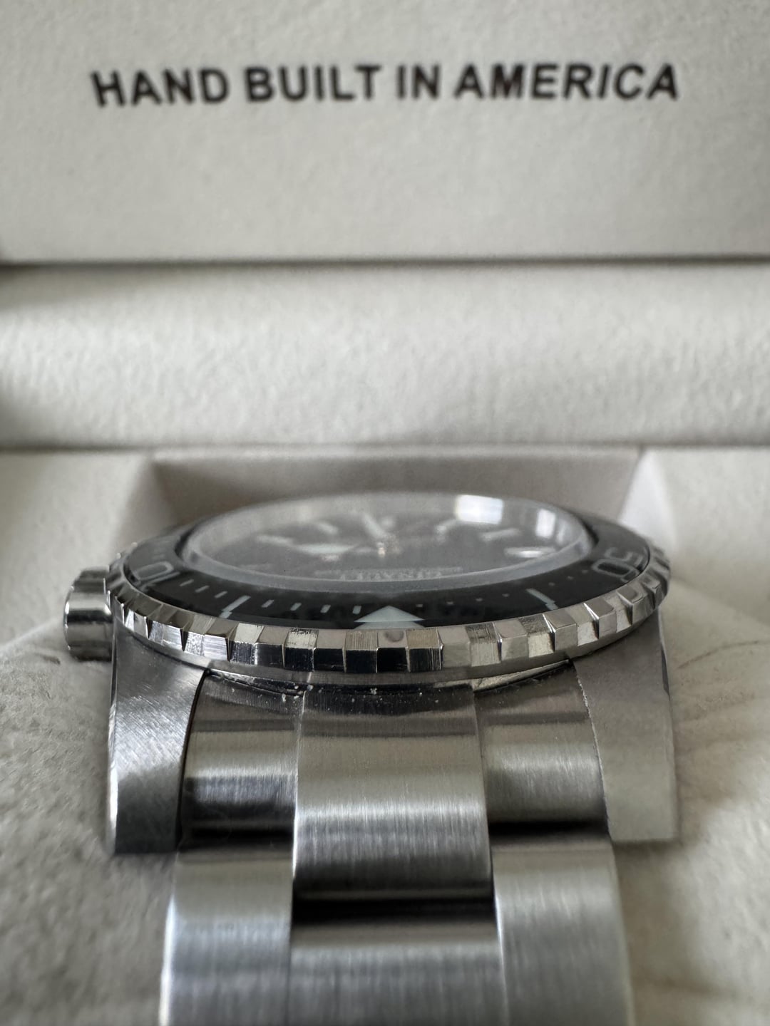 Hi all, I have a beautiful - excellent condition Ginault Silent Service with date complication. - $1050 w/ free shipping CONUS - Full set - No observed issues with time keeping The Specs are: 41mm Diameter, 20mm Lug to Lug, 47mm Wingspan, 12.1mm Thin. Sapphire Crystal Bezel with Luminous Indicator. In-House 6 Weeks Regulated Sellita SW200-1 Elabore Grade Caliber. Link to the watch for more info: https://ginault.com/silent-service/ Video of this watch for sale: https://youtube.com/shorts/_PfiZqGdO_g?si=EOHP-DjJvFD48goV