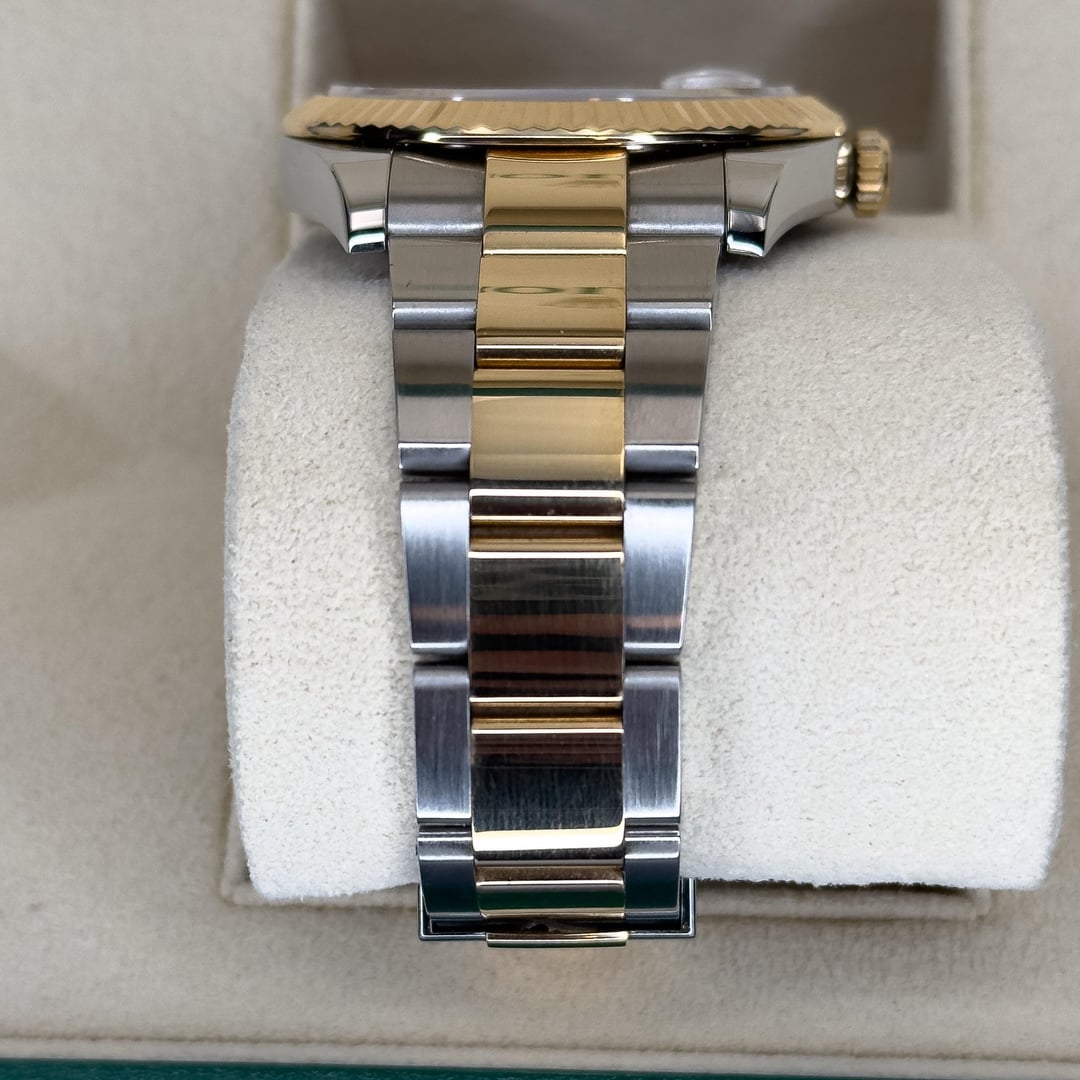Available now is an elegant variation in the Datejust 41 lineup. A two tone YG champagne diamond dial w/ a YG fluted bezel. This comes as a complete set (minus white tag), and is in excellent preowned condition. Timestamp: https://imgur.com/a/xDWMKR4 Asking Price is $14k shipped Payment: Wire/Zelle Reference: 126333 Model: Datejust 41mm Year: 2020 (August so still a few months of warranty) Scope of Delivery: Full set minus white tag, which was retained by AD. Outer box, inner Rolex presentation box, both manuals/booklets, card, card holder. The bracelet is fully linked. Condition: Excellent preowned condition. This watch looks very clean (especially for a two tone). There are minor signs of wear throughout mainly on the clasp/bracelet. Nothing major. The crystal is 100%, the case back sticker is still intact. The watch is keeping great time and running/ functioning flawlessly. I’m an independent dealer based in Phoenix, AZ with a solid track record here and many successful transactions across platforms. I have a 5 star rating on google business and am happy to answer any questions you have or set up a FT to show you the watch. Trades always considered. Check out my website or Google Business: State 48 Luxe! State48luxe on IG. Thanks for looking!