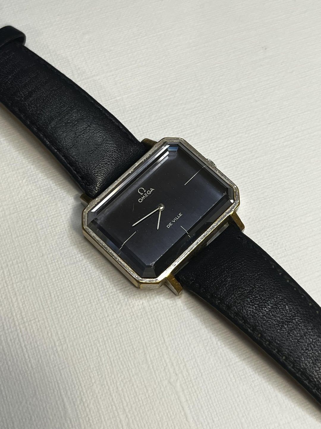 Hi selling this super stylish Omega De Ville Andrew Grima diamond shaped watch. Grima designed a number of the more stylish Omega watches in the De Ville line. This is a manual wind watch that keeps good time. Watch is on a nice navy blue Bambi strap. Watch comes with its original buckle. Please reach out if you want to see this or any other watch over FaceTime. See all pictures for details and timestamp. Feel free to message, comment, or PM me any questions you may have. Shipping is included in the United States. I accept most forms of major payment. For more vintage watches and first dibs on affordable pieces follow my Instagram at: Ar.ro.ws