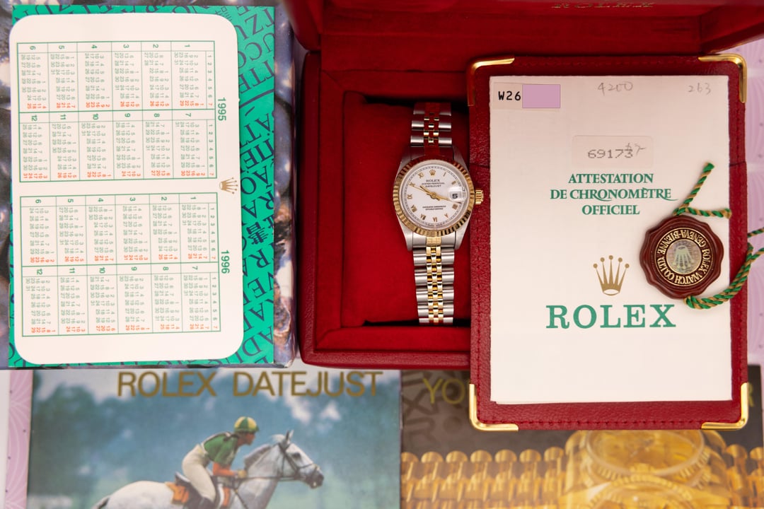 italiano![[WTS] 1994 Rolex Ladies Datejust Ref. 69173 | White Roman Numeral Dial | Box and Papers 1](https://cdn-cf.watchpatrol.net/600x600/img/full/d4a9149a801592f261706b2cd49686a0ad657a1e.jpg)