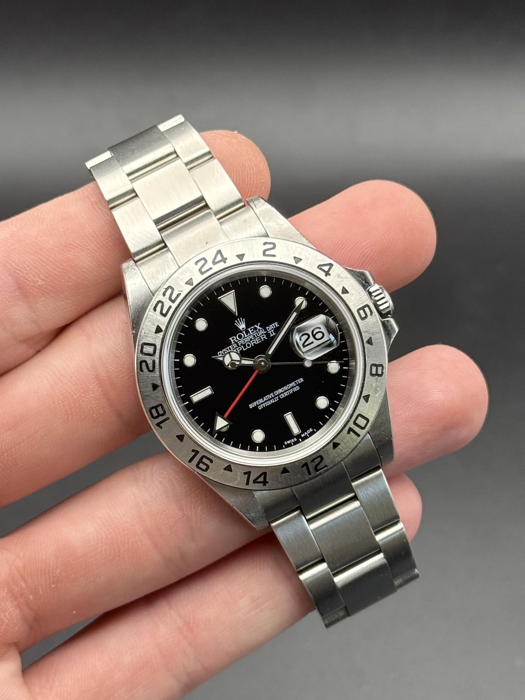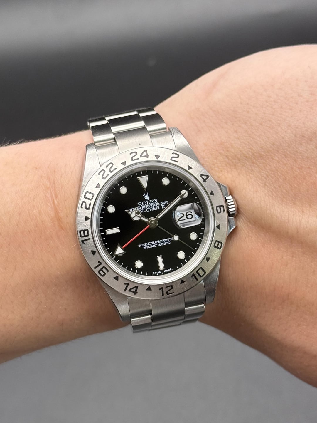 Here we have a mid-2000s no-holes case Explorer II in great condition! Minor scratches and marks throughout—an honest and sharp example. Solid end-link bracelet with 11 links. Running strong at +2SPD / 275AMP. Has a fresh crystal, O/G with fleabites included. Comes as watch only. Ref: **16570T** Price: **$5,999** Dimensions: 40mm Serial: **F (2003-2005)** Shipping: CONUS only, unless label is provided. Location: US, Iowa Please inspect the photos in their entirety, as they show the accurate and true condition of the piece. Purchase with confidence—we are a registered business in the state of Iowa with over 100+ five-star reviews. Plenty of references locally and from most watch groups, happy to run a reference check anywhere! Find us on I-G: QCTIMEPIECES TS: [https://imgur.com/a/YW6NF5i](https://imgur.com/a/YW6NF5i)