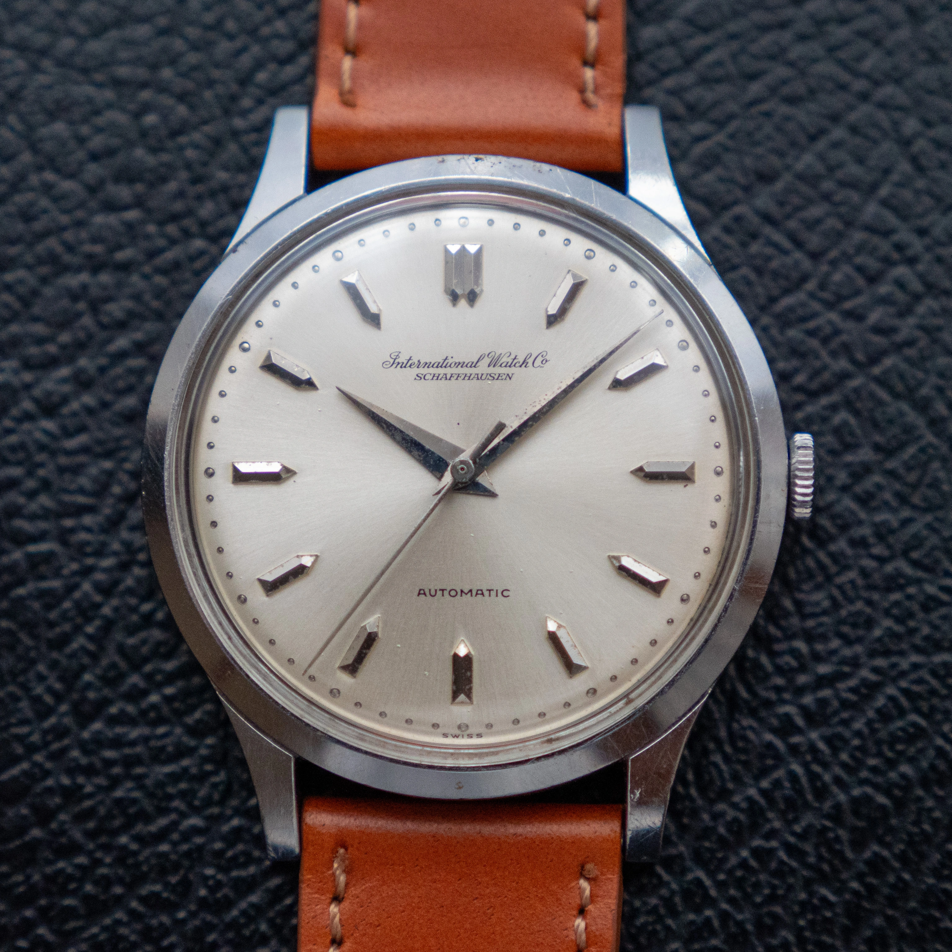- The dial is a beautiful sunburst champagne dial. It has the really nice cursive IWC logo, a signature of the IWCs of this era. It has some very small dots/stains here and there. They are visible in the photos.