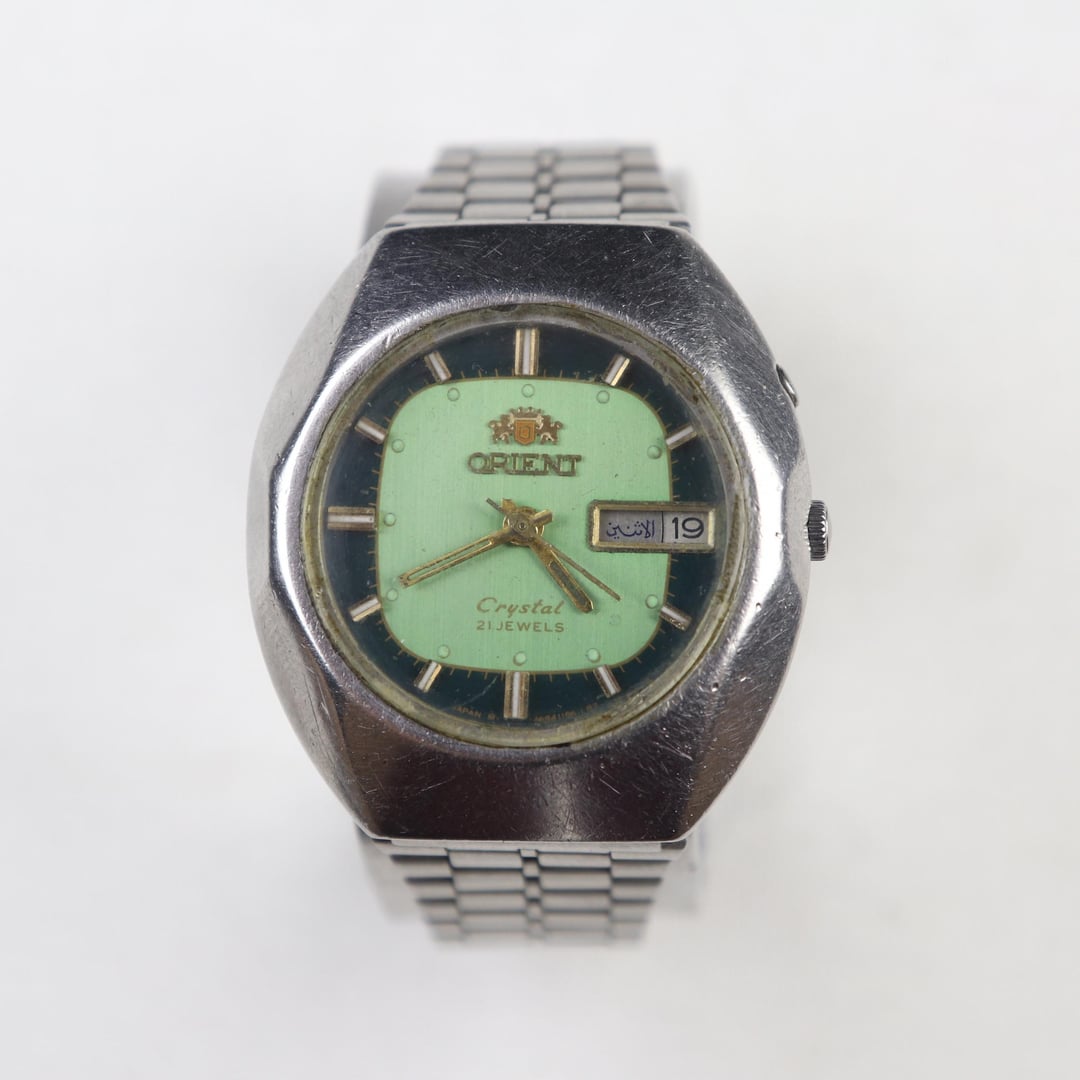 I'm offering a remarkable lot of 12 authentic vintage **ORIENT 3 Star Crystal** automatic watches—each powered by a reliable **21-jewel movement** and featuring the **Day/Date function**. This carefully curated collection showcases a stunning variety of dial styles, including **patterned**, **two-tone**, and rare colorways such as **purple**, **olive**, and **mother of pearl**. Several of these watches are housed in the iconic and highly sought-after **TV-style cases**, making this lot an outstanding find for vintage watch collectors and enthusiasts of classic Japanese horology. All watches are in **full working condition**, blending timeless design with dependable mechanical performance. **Included Watches:** 1. ORIENT 3 Star G469786-8D PR Automatic 21 Jewels Day/Date Patterned Dial Watch ⌚ 2. ORIENT 0S469C704B Crystal 21J Two Tone Patterned Dial TV Case Day/Date Watch ⌚ 3. Rare ORIENT 0S203C268 Crystal 21J Unique Blue Wave Pattern Dial Day/Date Watch ⌚ 4. ORIENT Y469634-40 Automatic Day/Date TV 📺Case Purple Dial 21 Jewels 46940 Watch 5. Rare ORIENT Crystal IT469258-4A CA Automatic 21J Green White Dial Day/Date Watch 6. Unique ORIENT 3 Star 469LR4-8A CA Day/Date 21J Patterned Beige Dial 46941 Watch 7. Rare ORIENT Crystal 3 Star H469736-6A PR Automatic Day/Date Beige Dial Watch ⌚✨ 8. Vintage Orient Crystal 21J Automatic 0S469CI9IB Two Tone Dial Day/Date Men Watch 9. Vintage ORIENT Freza Watch G 469563-4B CA Automatic Crystal 21J Day/Date TV Case 10. ORIENT ⌚3 Star Crystal F469141A-6A CT Automatic 21J Day/Date Yellow Dial Watch 11. ORIENT F469665-4A PU Automatic 21 Jewels Day/Date TV Case Olive Dial Watch 1970s 12. ORIENT Crystal G 469212-4A CA Automatic 21J Watch 🌟 Mother of Pearl Brown Dial Whether you're a passionate collector or a vintage dealer, this lot offers a unique blend of **style**, **rarity**, and **value**. Each piece has its own character and story—true gems from the golden era of Japanese watchmaking.