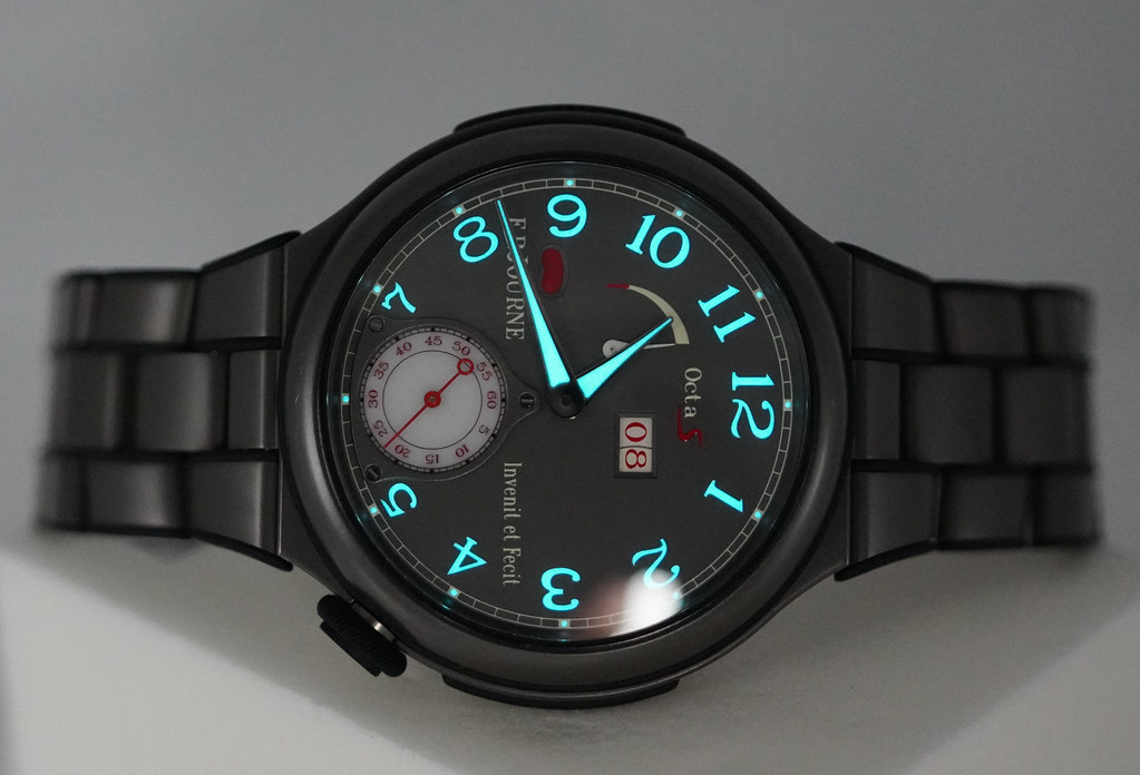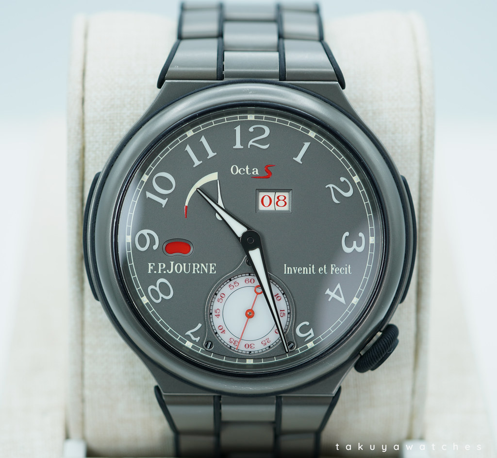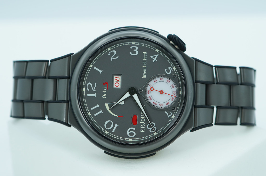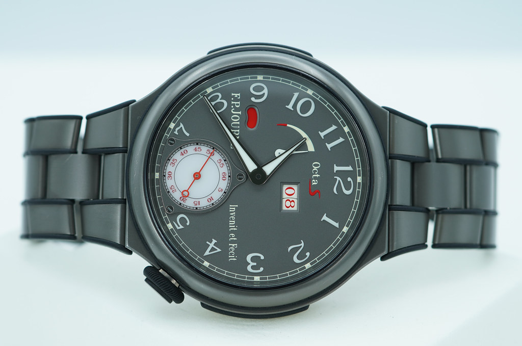 Hi, Selling An Excellent, Unpolished Condition & Very Beautiful Perfect Size 42mm F.P. Journe Linesport Octa Sport Automatic Reserve in Lightweight Titanium with Grey Dial and Red Accents. Its on Titanium Bracelet. Purchased from FP Journe Authorized Dealer. Watch running perfect with Non Issues. The Bracelet fits up 7.5 inches wrist. Boxes (Brown Wooden FP Journe) & Papers.
