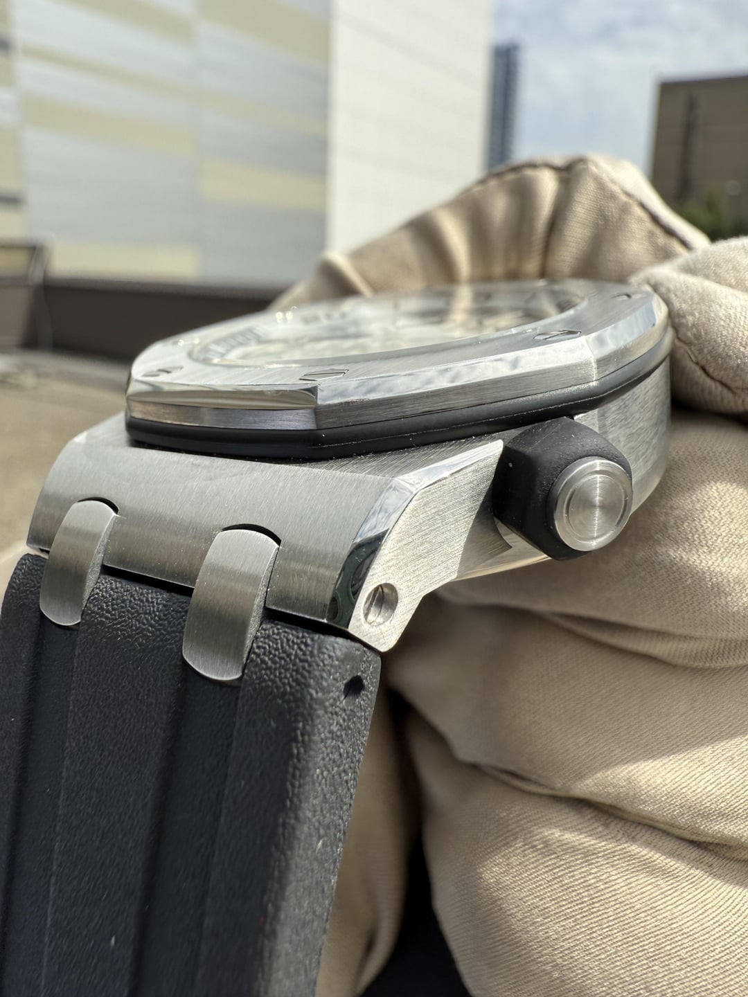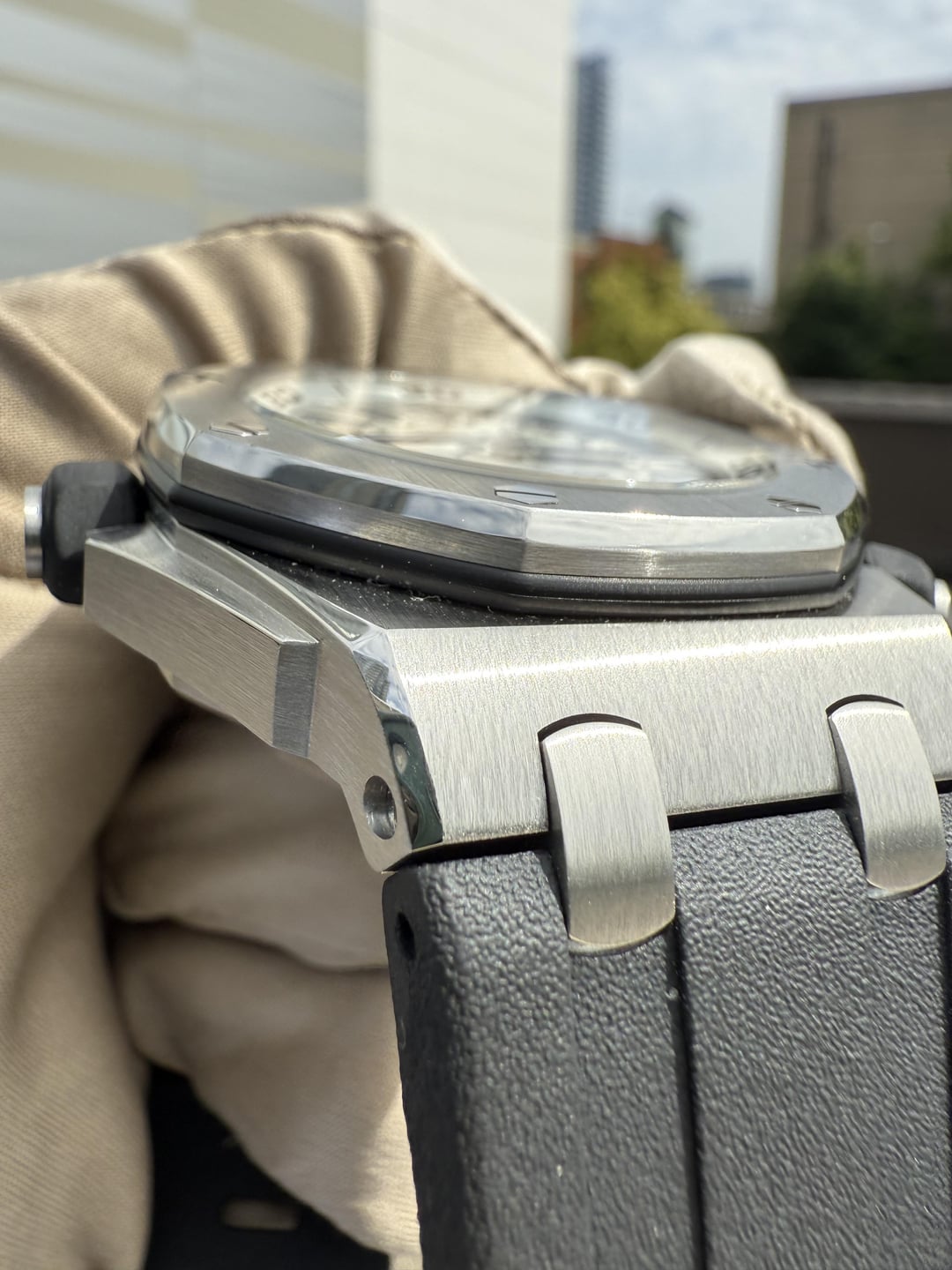 I like to think of this as the next level of a G-Shock when you got it like that. Just in time for some summer fun! Model: Royal Oak Offshore Ref# 15710ST.00.A002CA.02 Case Material: Stainless Steel Case Dimensions: 42mm Bezel: Stainless Steel Dial: White Tapisserie Dial Band Material: OEM Rubber Strap with Tang Buckel Max Wrist Size: 8.5 in. Original Manufacture Date: 2012-2021 Movement: Automatic, Mechanical Accessories: Watch only Condition: Watch is in nice preowned condition with some scratches to the case, bezel and buckle. Price: $16,350 shipped! Bank wire price. Can take cards for an added cost. WA Residents subject to sales tax Email: [email protected]