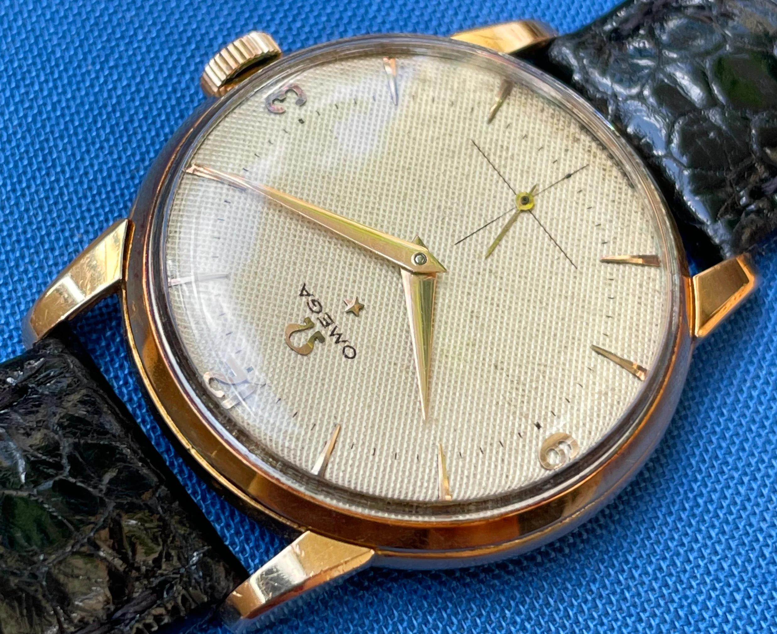 for sale is an Omega OT 2918 in a 33.5mm 18k rose gold case. The condition is nice for its age, with a few signs of wear here and there, but no mistreatment, not polished and of course an original waffle dial, which already has some patina. The little star on it is interpreted in different ways; one nice story, for example, is this: