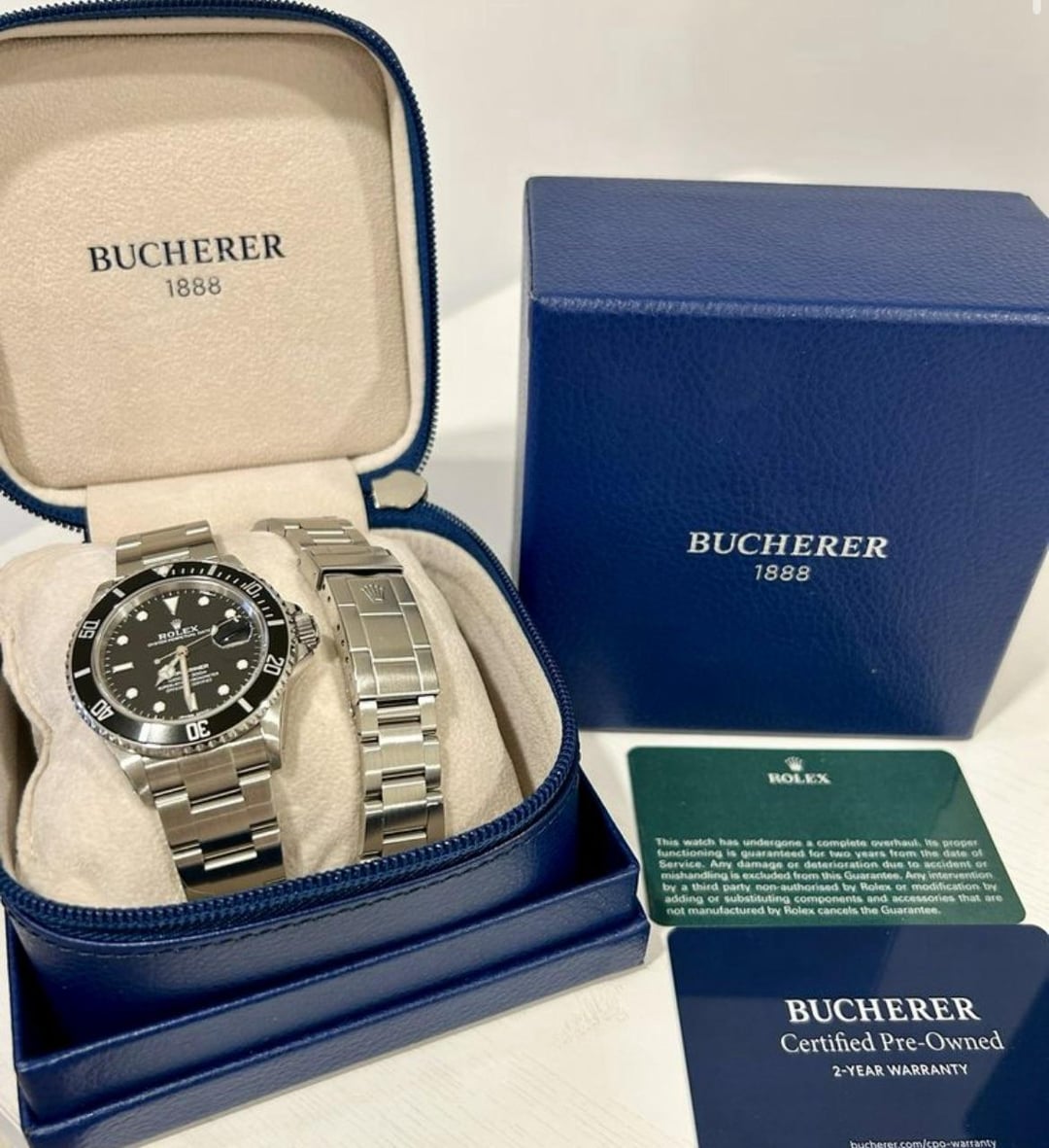 🔥🔥🔥 Price Drop 🔥🔥🔥 Rolex Submariner Date Reference 168000 Serial indicates this is from 1987 - were you at 38 year olds?! This is a very rare reference, transition era submariner that was ran for 9 months between 1987-1988. This particular example is in incredibly preserved condition with sharp case and bracelet. Minimal signs of wear and clearly unpolished given original case/bracelet integrity and finishing. Fully overhauled and serviced movement in 2022 with service dial, bezel insert, and hands. This comes with both Rolex Service card, and Bucherer’s certified preowned card indicating full authentication and meeting their standards for this program. Timestamp and gallery with tons of pics: https://imgur.com/a/lLKgEb5 Running at +5sec/24hours Currently on a Ginault bracelet to preserve the original. Original bracelet is missing 1 link. Fits up to a 7.75” wrist. Price: $8.5k shipped via FedEx fully insured. Some good reading on this reference and why it is special: https://www.watchesguild.com/articles/rolex-submariner-168000 https://www.craftandtailored.com/products/1988-rolex-submariner-ref-168000-triple-0-w-box-papers?srsltid=AfmBOooXMz_FjsQXGPNIZ6ZivrkSThhSzAzMEhLeZCDF8CeL0axFChwR https://www.bobswatches.com/rolex-blog/watch-review/rolex-submariner-evolution-1680-16800-168000.html?srsltid=AfmBOooUbVMPhBp6kTI2-9IAH665pnE1Mc7aUZUdMXN8Z39vQxZALSDc