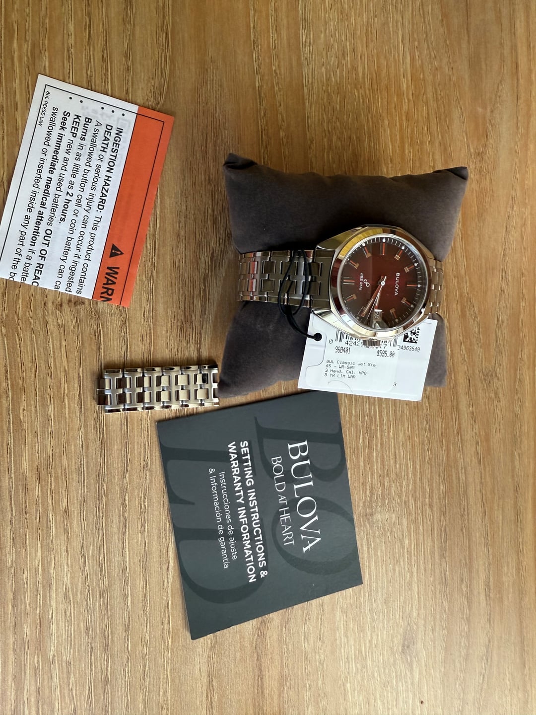 Selling my Bulova Jetstar, barely worn. Comes with box, papers, original tag and box. In excellent condition. Asking $375 shipped CONUS, paid via Zelle, wire transfer or PayPal (f&f).