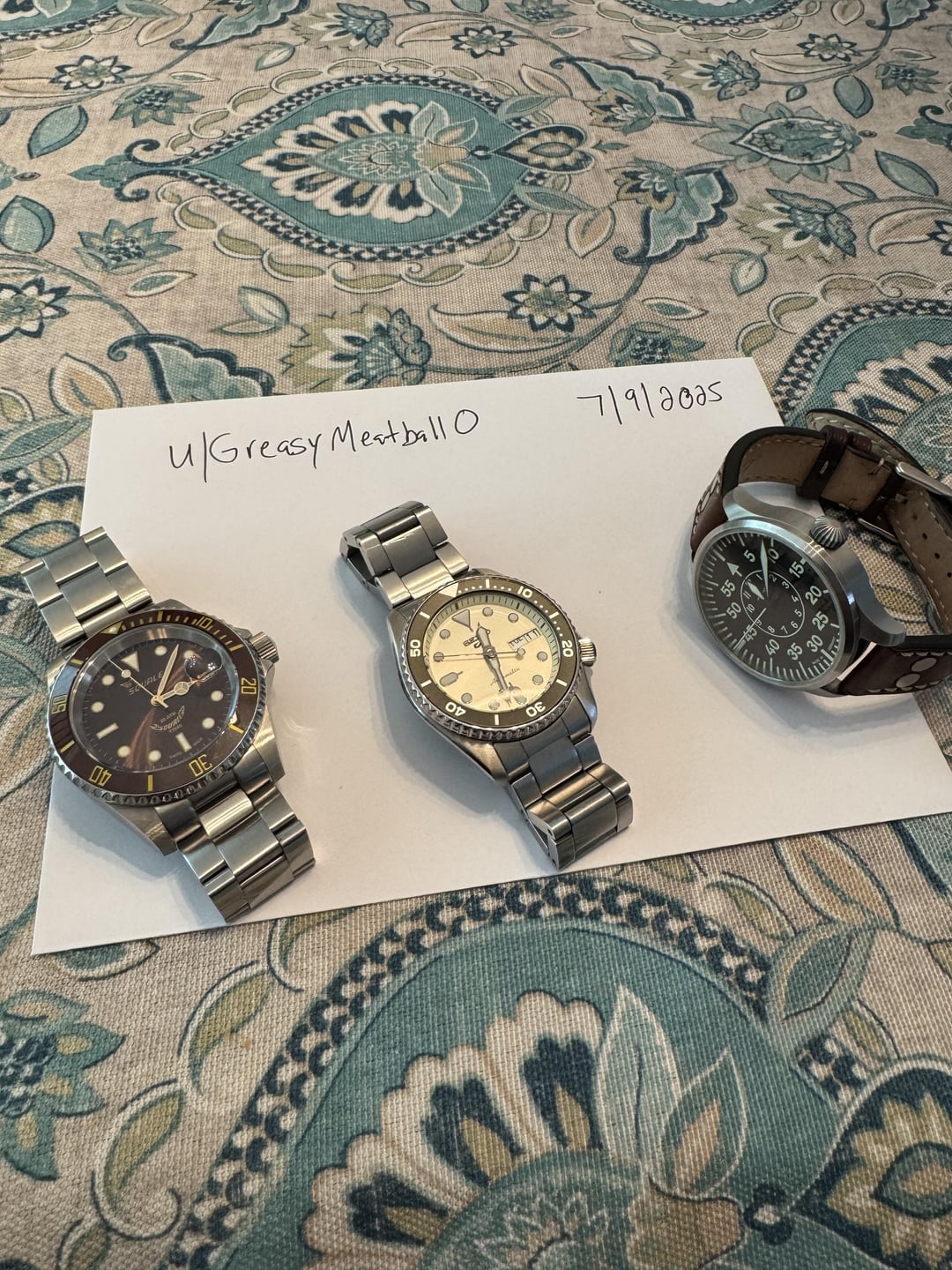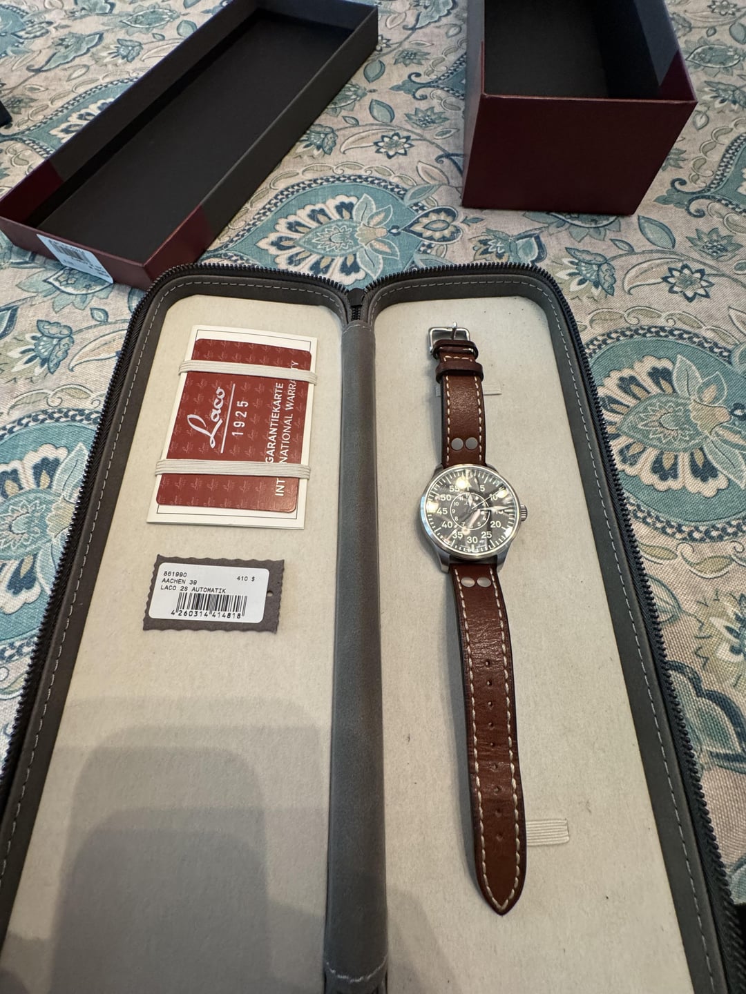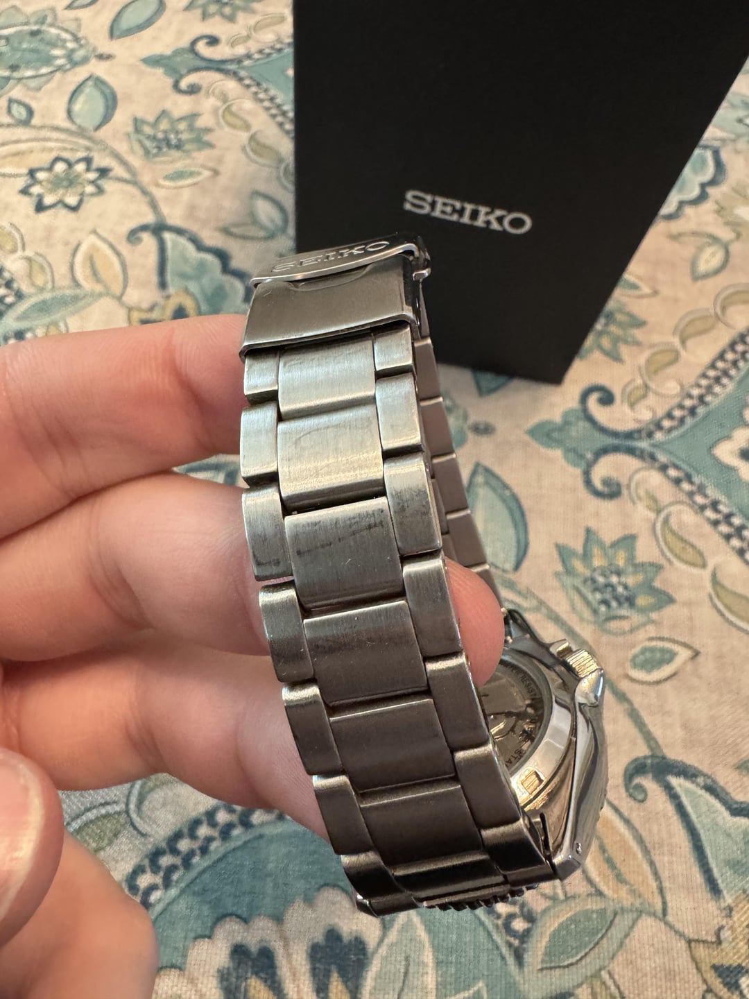 Hey WatchEx! Up for sale is 3 of my watches. first a Squale Y1545 diver, Second a Seiko SRPK31 and last a Laco Aachen 39 fleiger watch - Squale Y1545: Got this from a fellow WatchEx user on trade but wanna get a newer Squale. Watch is in pretty good condition but has some scratches on the bracelet and some rubbing marks by the clasp. Watch is 40mm and has a 48mm LTL. Asking $579 OBO - Seiko SRPK31: bought this straight from Seikos website for $325, watch has scratches on the bracelet and some chips on the bezel but the case is in good condition. Asking $190 OBO - Laco Aachen 39: bought this from the Laco booth at the Wind Up watch fair in NYC. Watch has Type B dial and an open case back. Has scratches on the buckle and some scratches on the case. This was my original GADA watch so I wore it a lot. Asking $279 OBO Tried to get a picture of each watches flaws so if you need/want more pictures or a video feel free to ask. Each is priced fully shipped as well. Located in NJ and can take Zelle, Venmo or PayPal