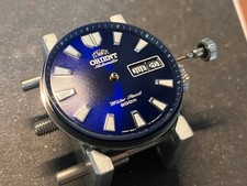 Orient “Mako” Dive Watch Automatic The case measures 44.5mm, and in addition to this, it has broad and thick lugs which makes it appear even larger than it actually is. Its thickness measures 13.3mm, and the watch has a lug-to-lug of 51mm. In addition, it has a lug width of 20mm. Japanese automatic in-house movement Cal 46943, 200 meter water resistance, and fantastic build quality. No scratches on the glass. Minimal wear. I’ve this watch for over 10yrs. Worn it maybe half a dozen times. It’s in perfect working order. Price is $100..buyer pays for shipping. Thanks guys.