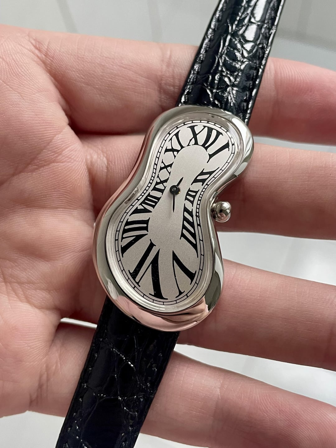 Hi all! Here for sale is one of the famous Dali Softwatches by Exaequo. Size: between 18 and 27mm from one side to the other, 47mm lug to lug, 7.5mm thin Movement: Swiss made quartz Crystal: Plexi (slightly damaged at the edges in 2-3 places, 1-2 very small scratches) Case: Steel, rhodium/palladium/white gold plated (not sure which) Condition: Great condition except for the crystal (see above) and some scratches on the back and in between the lugs (see photos). Comes on the original strap with the original buckle! Price: $890 with shipping included. Shipping worldwide from Switzerland. Payment method: Wise, IBAN, crypto. [Timestamp](https://imgur.com/a/sXJsD7q)