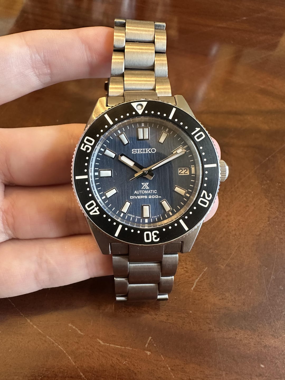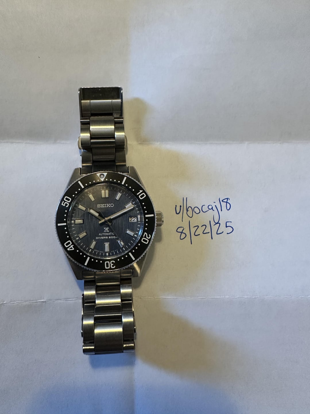 For sale is a Seiko Prospex SPB297, a “Save the Ocean” special edition diver. It has a beautiful textured blue dial that is supposed to resemble glacier ice. It comes with the original box, I do not have the warranty card any more. I have this watch discounted because it could use a service. It’s running at about +30 seconds per day, which is just outside of the standard range of +25 to -15. It also seems to stick when manually winding it when it’s dead, you just need to pull the crown out and pushing it back in gets it going (or just shake the watch a bit). Overall not a big deal and can absolutely be worn as-is, but I wanted to be fully transparent! I am looking for $600 shipped, U.S. only (retail was $1,250). I can take Venmo, Zelle, or PayPal (G&S if you have feedback and cover the fee). Please let me know if you have any questions, thanks!