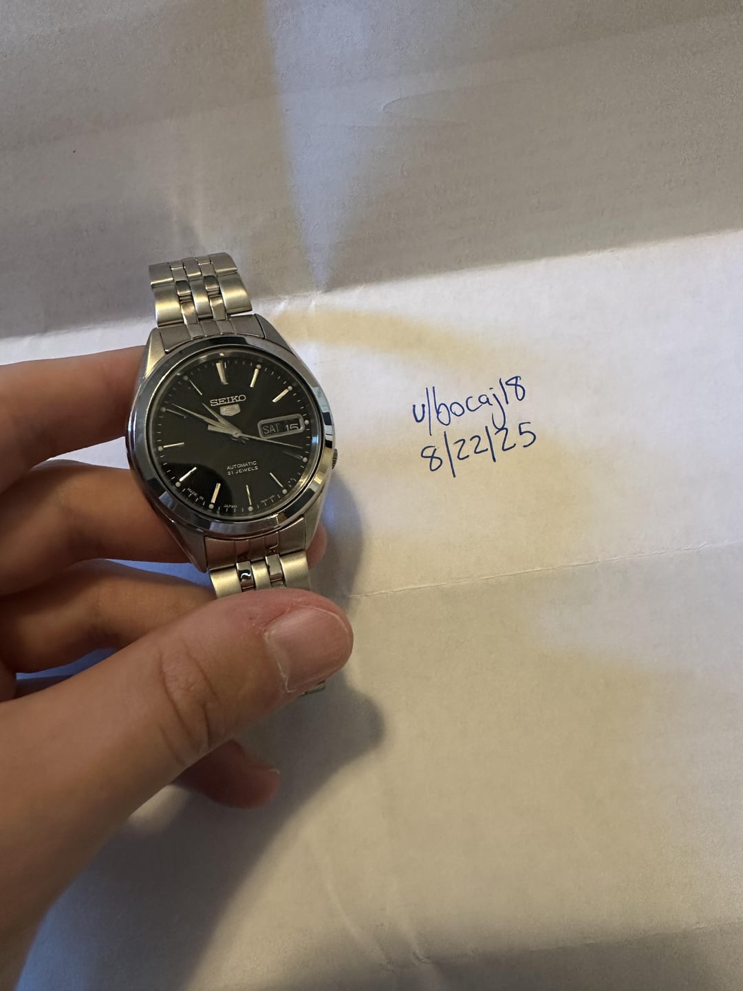 For sale is a Seiko 5 SNKL23J1. The watch is in excellent condition, essentially new. It comes with the original bracelet with full links, no box or papers. I am looking for $85 shipped, U.S. only. I can take Venmo, Zelle, or PayPal (G&S if you have feedback and cover the fee). Please let me know if you have any questions, thanks! Edit- SOLD