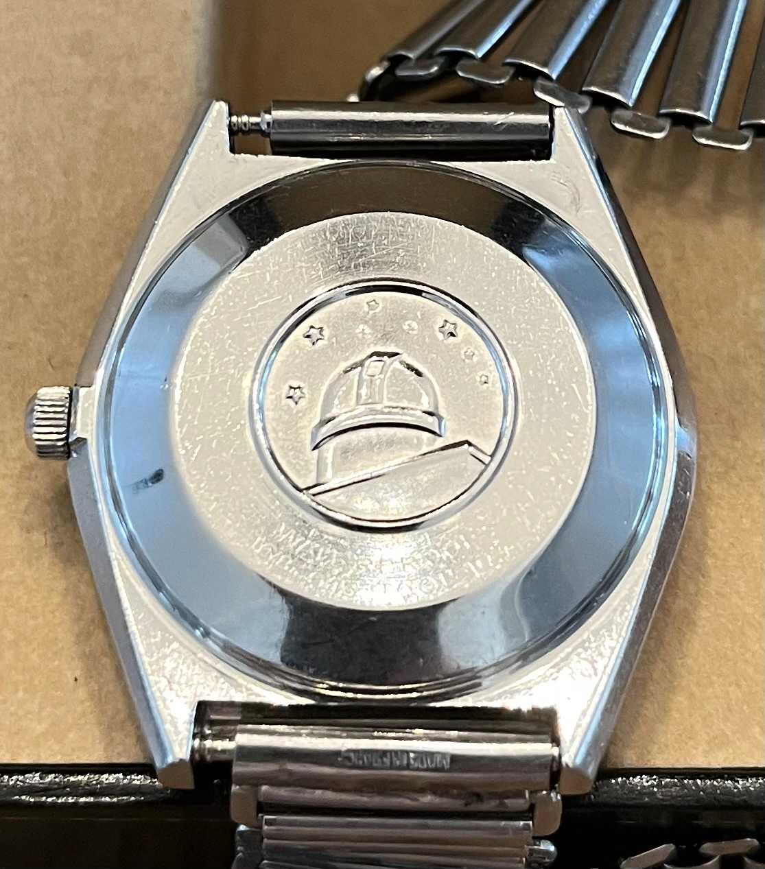Omega Constellation Ref. 168.015 ca.1966-67 on a vintage Bonklip bracelet. Watch is in excellent condition for being nearly 60 and is completely original, down to its dial, hands, crown and crystal. Will include a 7-row BoR straight-end bracelet less clasp in the sale. Timekeeping is okay, but needs a service, although I don’t really mind, and the quick set date function operates perfectly as designed. Just a sweet little Connie that can be worn as is!