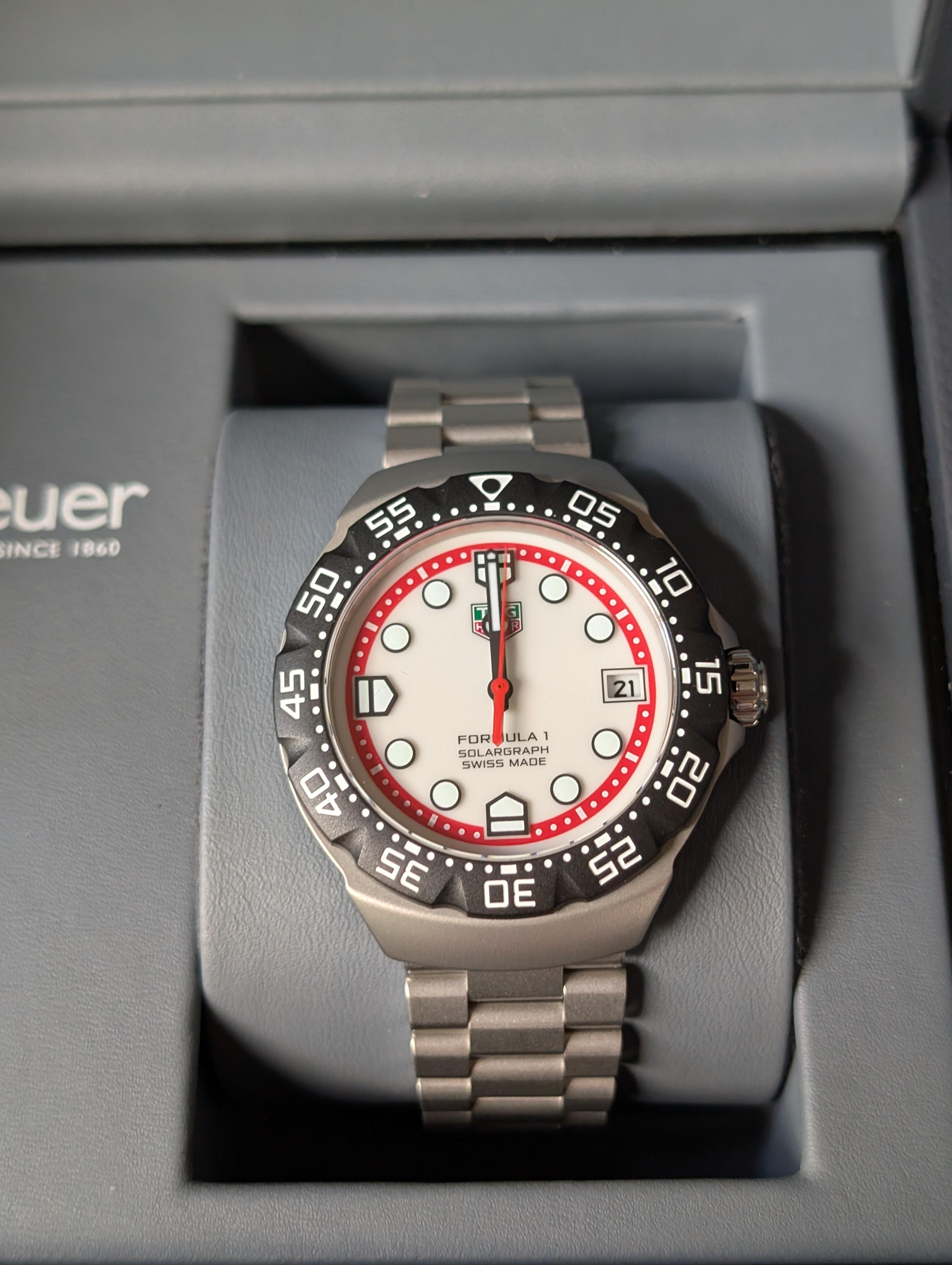 WTS TAG Heuer F1 Solargraph I'm selling this recently acquired TAG Heuer F1 Solargraph This is a catch and release for me. I bought it sight unseen from another Reddit user. Once in my hands it just didn't click for me. I thought it might be my beater but I just can't bond with it. Full kit, in mint condition **$1,700 OBO** **CONUS ONLY** **NO TRADES NO TRADES NO TRADES** Zelle, PayPal G&S (F&F for members with extensive feedback) Photo Album: https://imgur.com/a/qjAzh5r Timestamp: https://imgur.com/a/3rFoAnd