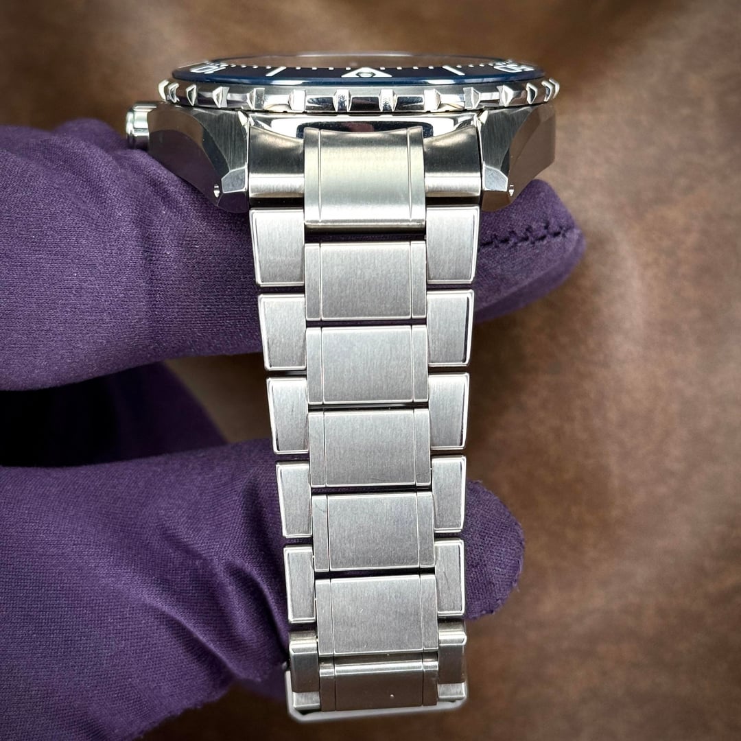 Grand Seiko easily makes some of the most unique and interesting dials of any manufacturer. This example from the Evolution 9 Collection is no exception! It is a blue variation of their "ushio" dial. It's very representative of the ocean in our opinion. With a titanium case, 200m depth rating, 5 day power reserve, and +/-10 seconds per month accuracy, this watch is ready for anything, and will look great while doing it! This example comes as a complete set and includes the watch, outer box, inner travel case, booklets, warranty card (dated Sept 2023), hang tags, and extra links. There are some hairline marks on the side of the case, but are only noticeable under the right light. Otherwise the watch is in excellent shape. Asking $9250, slightly negotiable The watch will be shipped, overnight, fully insured, with signature required, as soon as funds clear. As for myself, I have many references from buying and selling across the various forums, Reddit, WUS, TRF, and others that I would be willing to provide upon request. Feel free to reach out to me with any questions and I will do my best to answer! Thanks for looking and feel free to follow me on IG for more! @the.apex.co