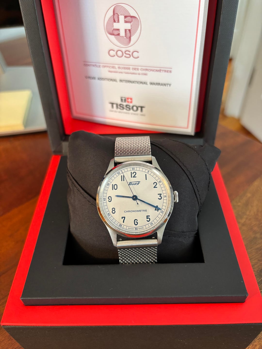 Selling Tissot Heritage 1938 COSC White Dial including blue strap, brown strap and Milanese bracelet for $750 including shipping. Box and warranty card included. About 21-20 months left on the warranty. Only wore it a handful of times. I don’t have the strap codes anymore, yet I can provide the receipt if requested. I bought direct from Tissot. Simply looking to swap out this white dial watch for my new white dial Hamilton Murph. Watch is in great working shape. Happy to FaceTime or send more pictures upon request.