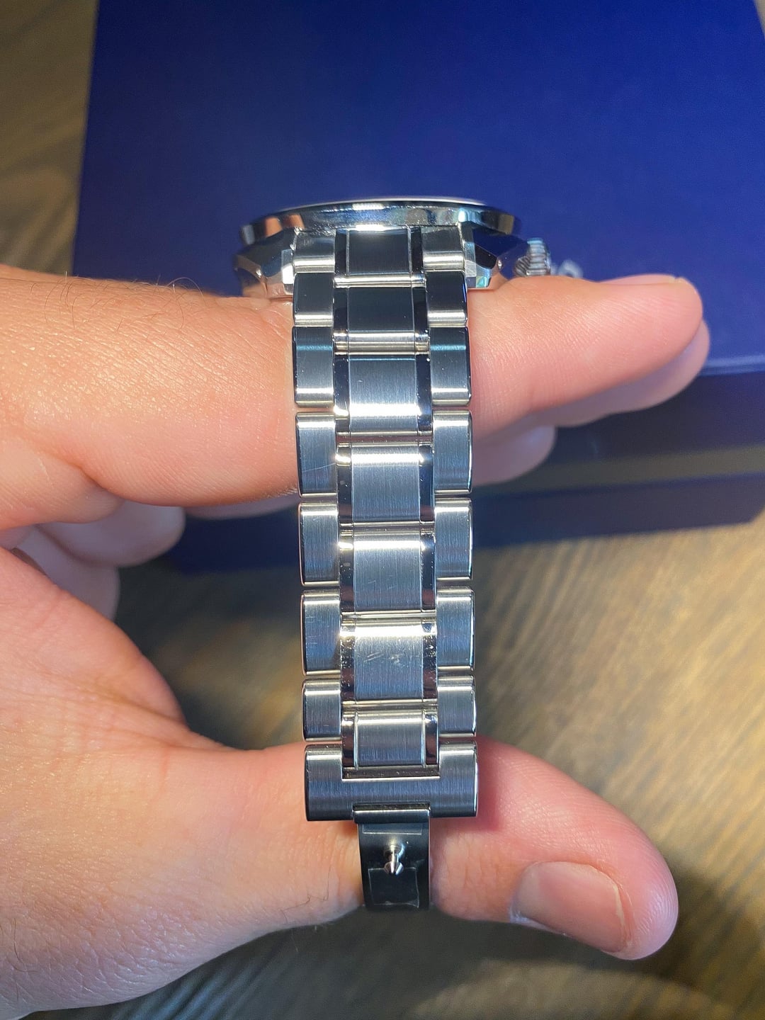 Hello Watch Ex! Looking to sell my gorgeous Grand Seiko SBGJ203 Hi Beat GMT. This stunning reference features a black dial inspired by Mt. Iwate, multi faceted hands and hours markers, and a bright red GMT hand that really pops. All contained in the timeless 44GS case which is stunningly polished. This watch comes full set inner and outer box, papers, and additional GS deployant leather strap. All original bracelet links are included. Card is dated 2014. Watch is in good pre owned condition with some hairline scratches on the case, and a more significant scratch on the lower left quadrant of the case. I’ve done my best to highlight the scratches, although they are not as visible when you’re wearing the watch under typical lighting. The sapphire crystals both front and back are immaculate. Watch is running well. This watch is absolutely stunning in the sunlight and you will catch yourself staring at it often. Case diameter: 40mm Lug width: 19mm Thickness: 14mm I am asking $3600 shipped fully insured. Payment: PayPal G&S only I am willing to provide a custom time stamp at your request and I am comfortable with a FaceTime call to show the watch. Thank you for taking a look. Video: https://imgur.com/a/Hb7O3Vq