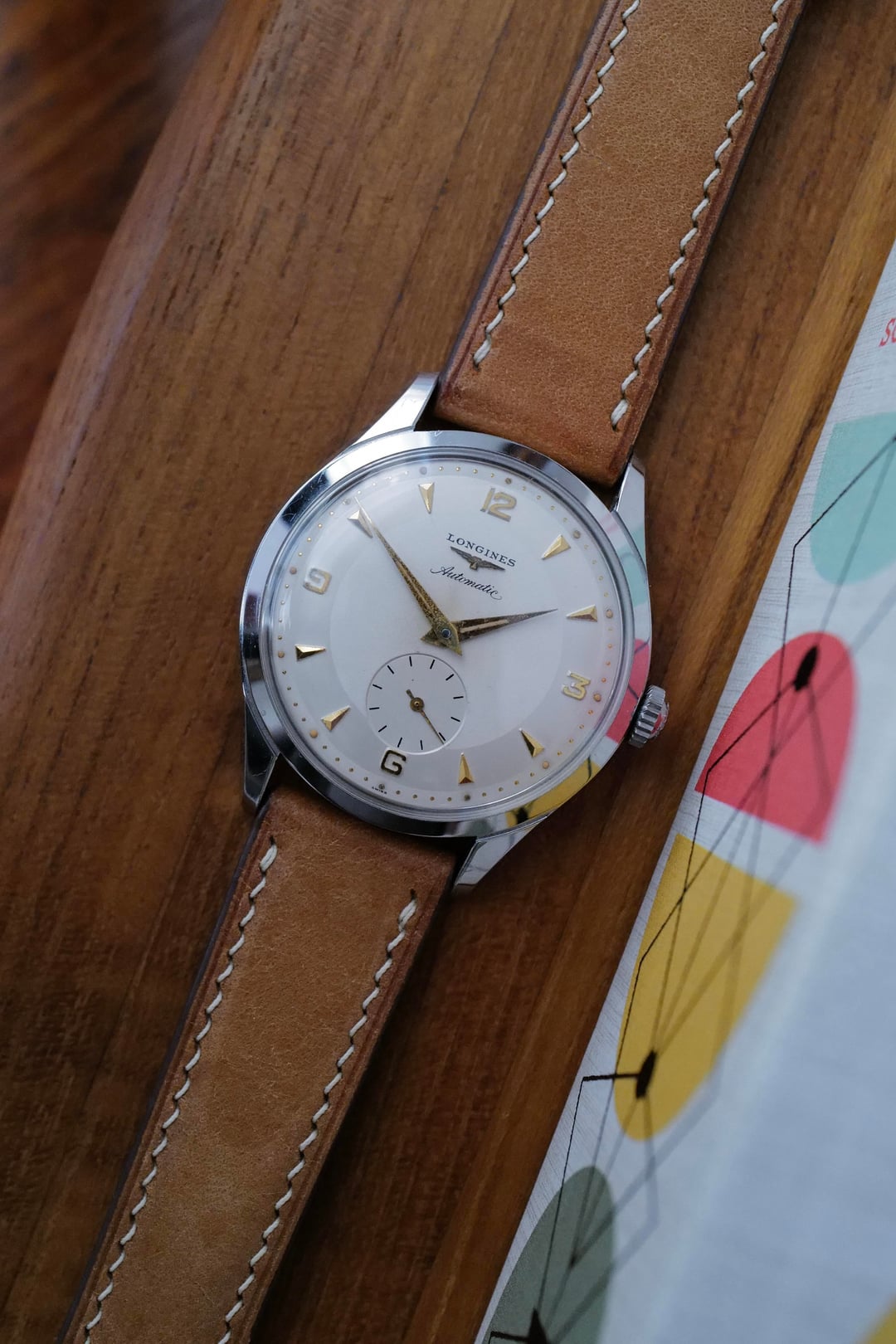 For sale : Vintage Longines Sub-second Automatic Watch This piece was originally purchased from Shuck The Oyster, a vintage watch dealer based in Berlin. [Original listing](https://www.shucktheoyster.com/portfolio/longines-vintage-automatic-watch-6664-3/) Product Description: * Brand: Longines * Model: Sub-second * Reference: 6664 * Year: Invoiced on 12 March 1958 to the company Terrase, which was at that time Longines agent for Sweden & Norway * Movement: Automatic * Case Material: Stainless Steel * Caliber: Cal. 22A * Size: 35mm * Lug width: 18mm * Straps: Italian Pueblo leather in cognac * Box & paper: None * Condition: Original immaculate two-tone dial with copper tone hand set and applied indices. Very little wear on the case & on acrylic crystal. Full stainless case with screw down case back. I believe the case is unpolished, except the case back lightly polished in the past. The movement is very clean & running well, however the service history is unknown. * What makes this timepiece exceptional: Caliber 22A, which powers this watch, is the first automatic movement manufactured by LONGINES, put on the market in 1945. This caliber, which at the time represented a break with the principles of watchmaking construction used until then by the company, is characterized by a bi-directional rotor operating the winding in both directions, a feature found on most automatic movements today. The exceptional condition of the piece, featuring an original immaculate dial. * What makes Cal. 22A so special : [The Coup No One Speaks About - Longines First Automatic Movement ](https://goldammer.me/blogs/articles/longines-first-automatic-history?srsltid=AfmBOoqq44qCHawdYT3AkV8MZu-T11CqSQFAEqlef4S4McGaMbizZA-C) * Price : $1,295 with free conUS shipping. Payment via Zelle, Venmo, Wire, PayPal FF or G&S (+3.5% fee). Let me know if you have any questions, thank you. [Albums](https://imgur.com/a/MkyCxb0) [Timestamp](https://imgur.com/a/7ZCl3wH)