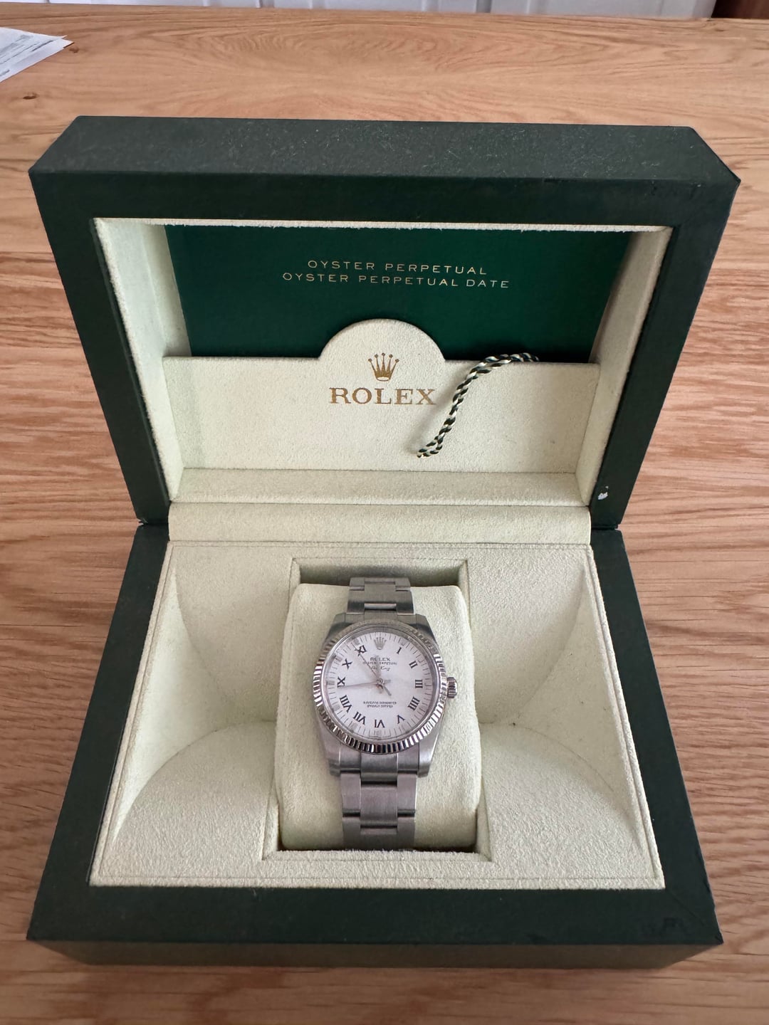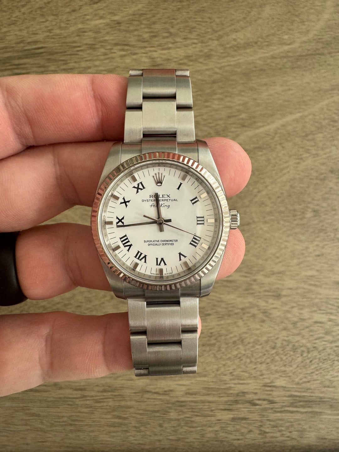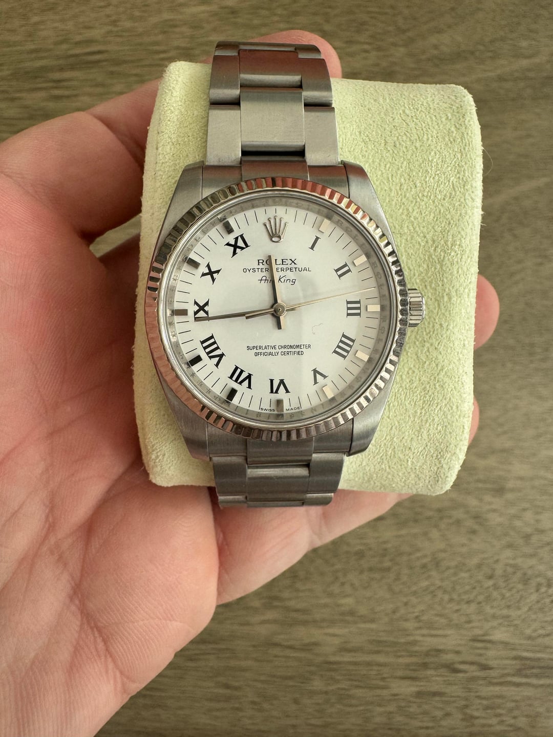 Hello all, Looking to sell or possibly trade my 2007 Rolex 114234 Air King. 34mm, white gold fluted bezel, very good condition. Come with original box, hang tag, booklet, and papers from the jewelry store I purchased it from. I have sold numerous watches on here in the pass even though my flair does not reflect it. But if you look at my post history you will see. $4000 net to me. Open to trades. Looking for a chrono.