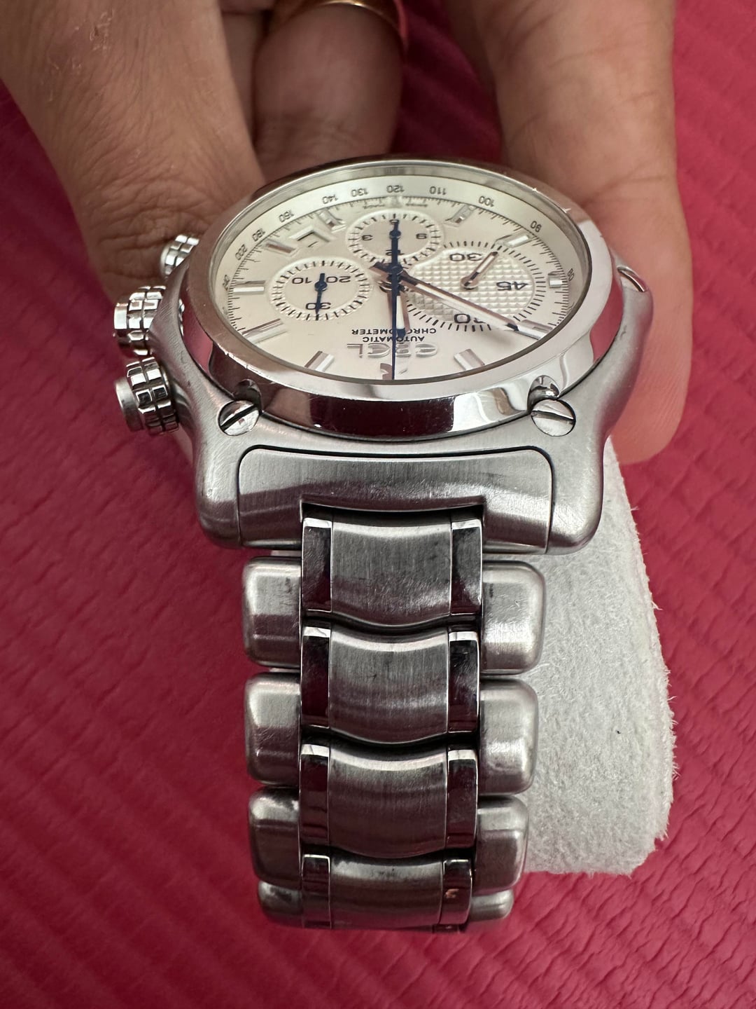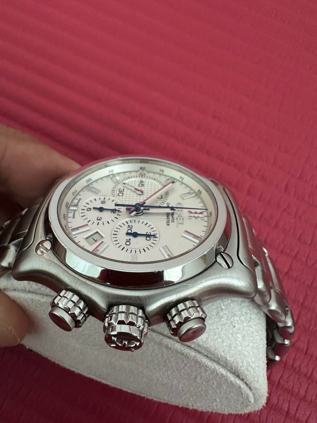Up for sale is my Ebel BTR 1911 Chronograph. The watch has the Ebel 137 caliber which is based on Lemania movement. Variants of this movement can be found in high end watches such as Breguet type XXI. The watch works perfectly well and keeps time accurately. It has some scuffs and a small dent on the bezel close to 8 o’clock mark. This can also be seen in the picture. It is currently sized for 7.25” wrist with two extra links available. Looking to sell for $2,000 + shipping. Slightly negotiable but don't low ball. Will accept payment through Zelle, PayPal F&F or Venmo. Will only ship within USA. Please let me know if you have any questions.