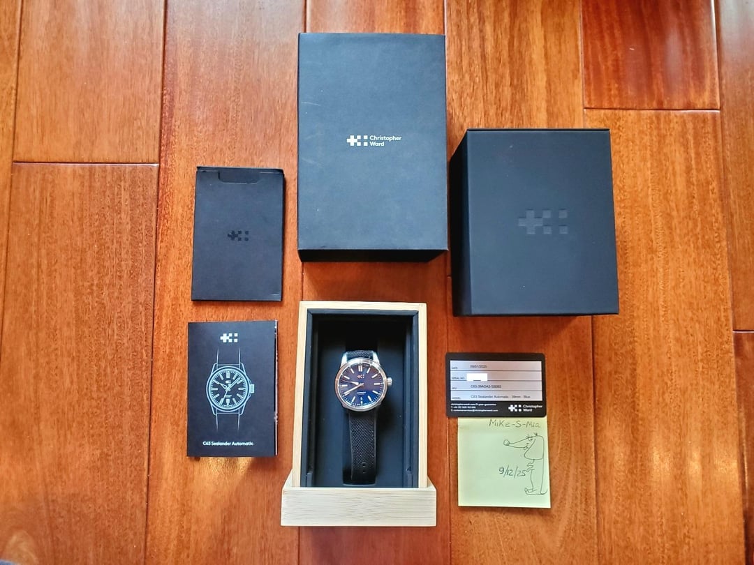 Christopher Ward C63 Sealander Blue dial in 39mm **Watch**: Blue dial C63 on CW hybrid strap in black **Included**: All boxes and packaging, card dated 2025 **Condition**: In excellent condition. Worn, literally just a couple times. **Price**: Really want it gone before going to FL for the winter, only **$675** shipped CONUS. Please seriously consider what the market is and how this watch is priced before making any offers. Also, if your wife "doesn't let you buy" after you agreed on the price and are "sending payment"... please purchase a pair of pants before doing so?