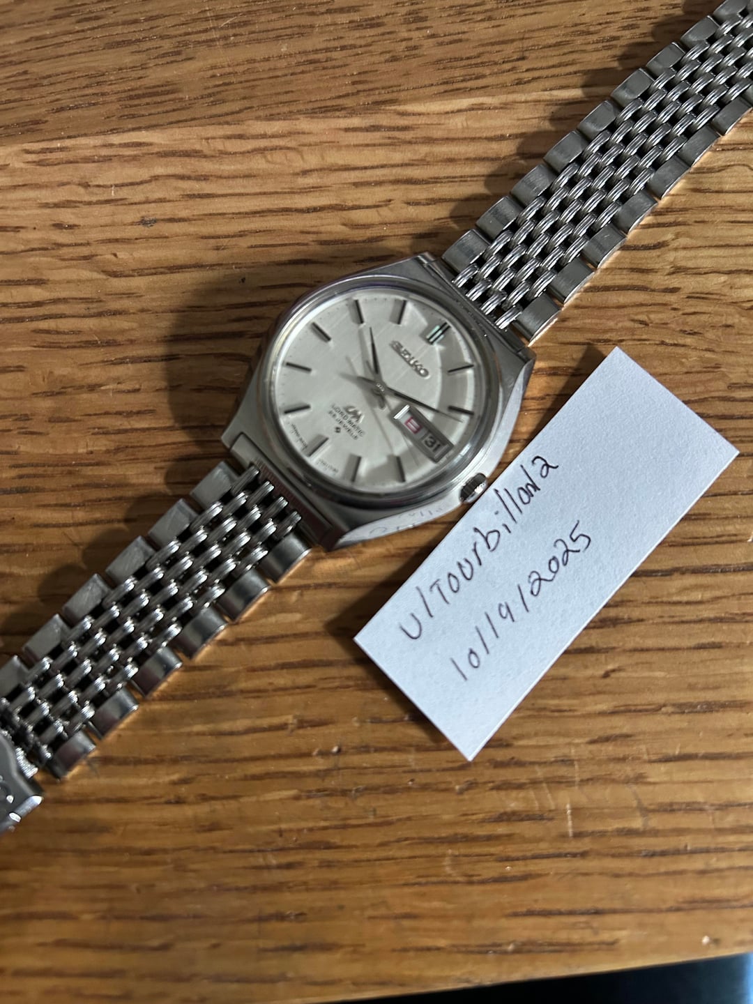 Timestamp: [https://imgur.com/a/lYX2nyh](https://imgur.com/a/lYX2nyh) *If you’re looking for a fantastic everyday vintage watch then perhaps this 1969 Seiko Lord-Matic REF:5606-7010 is just the watch.* *This watch features a stunning ivory white linen dial that is paired with mirror polished indices and sharp hands that create a great contrast to the dial.* *Powering this watch is the Seiko 5606 25-jewel automatic movement that provides great accuracy, hacking for precise time-setting and a day-date with quick-set in both English & Kanji.* *Note: When changing the day-date make sure to only change it from the times of 7 AM-5 PM as if done when the watch is changing the day-date it can break the date corrector wheel.* *Housing this watch is a fantastic monobloc case design that allows for an ultra slim case portfolio and has nice radial brushing on the top with mirror polishing on the sides.* *Condition: In good condition with some wear acquired through time.* *Movement Condition: The movement was serviced in October of 2025 and is currently running at ± 4-9 seconds per day, healthy amplitude of 220-230 and a beat error of 0.2MS.* *Bracelet size of 7 ⅛”.* *Price: $359, no trades at this moment.* *Shipping: Free shipping within the US. International shipping available, price may vary* *The watch ships from SLC, Utah USA.* *Payment Method: Paypal, Venmo or Zelle. 3% extra if using goods & services to cover the fee charge.* *Feel free to reach out if you have any questions!*