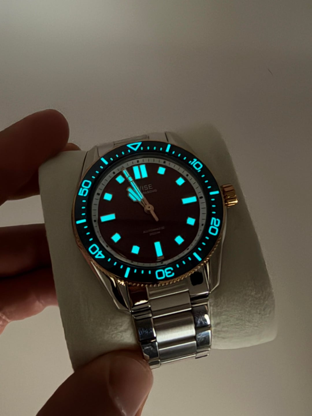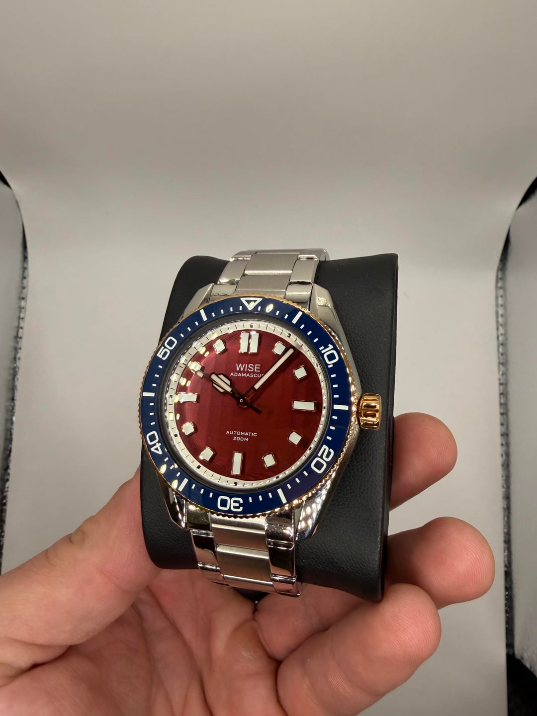 Up for sale is my Wise Shades of Thailand diver. Fantastic microbrand piece with a ton of wrist presence and great finishing for the price. Details: Case: 40mm 904L stainless steel Movement: NH35 automatic Crystal: Sapphire Bracelet: Original 904L stainless steel + extra links included Condition: Excellent (light wear on clasp only, no major scratches or dings) Includes: Full kit – box, papers, bracelet, and tags Price: $950 shipped CONUS (PayPal G&S +3% or F&F) Location: California No trades. Happy to answer questions or provide additional pics.