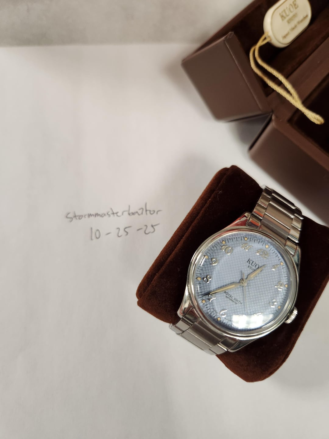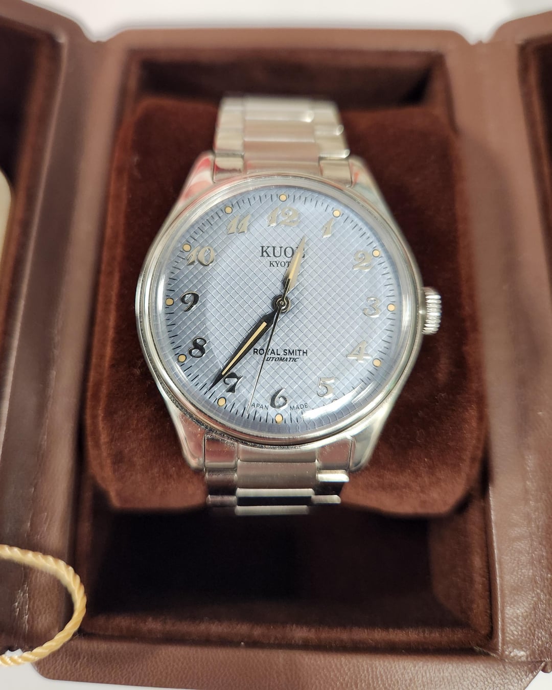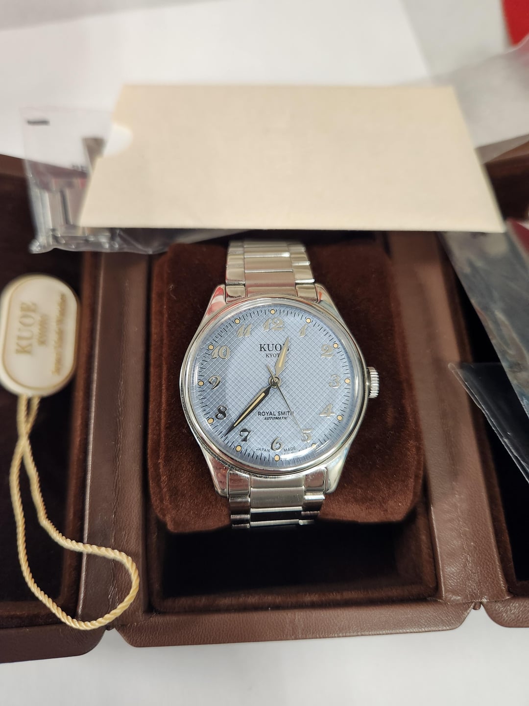 Another catch and release for me, the Kuoe Royal Smith 90-006 Brequet Numerals with light blue dial, full set with box and papers 35mm in very good condition with only minor scratches on the case, clasp and bracelet, powered by thr miyota 9039 high beat movement Looking for $600 shipped conus via zelle