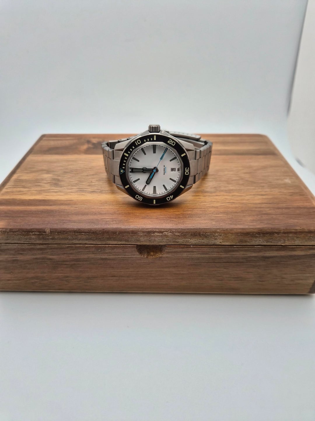 For Sale: Zelos Swordfish 40mm Titanium “Frost” This striking Zelos Swordfish 40mm Ti features a full lume dial that looks incredible both day and night. Condition: Pre-owned, excellent condition with only minimal signs of wear. Specifications: Case Diameter: 40mm Lug to Lug: 46mm Thickness: 12mm Lug Width: 20mm Movement: Seiko NH35 (color-matched date wheel) Water Resistance: 200m Crystal: Sapphire with inner AR coating Lume: C3 X1 and BGW9 Bezel: 120-click unidirectional Bracelet: Titanium with screw links, flip-lock, and microadjust clasp Includes: Zelos four-watch travel case Wooden presentation box Steel warranty card Price: $350 Payment: PayPal F&F (preferred), Venmo F&F, or Zelle accepted Shipping: Free within CONUS Location: Fernandina Beach, Florida Thank you for viewing my listing! https://imgur.com/a/Q9bV8ln