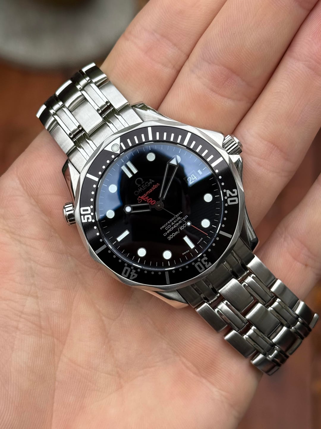 F/S: Omega Seamaster Diver 300m JAMES BOND 007 L/E Ref: 212.30.41.20.01.001 Specs: • Beautiful black lacquered dial w/007 second hand • Self-winding • Size 41mm • Sapphire crystal • 300M Water Resistance • Automatic movement 2500 Condition: Great shape with very minimal hairlines, almost no signs of wear.Please see photos for accurate representation of wear! This is a stunning watch that does not pop up for sale often. Please pm me with any questions you may have! This comes as watch only. Everything functions as it should on this watch, and it runs well. Price: $3,450 Shipped to the CONUS or best offer! Location: Michigan, USA 🇺🇸 Payment: Zelle or Wire preferred, can also accept paypal f&f for buyers with strong transaction history.