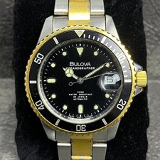 | RARE BULOVA OCEANOGRAPHER AUTOMATIC BLACK DIAL TWO TONE DIVER - BULOVA TRIDENT omtrag-49 (49) |