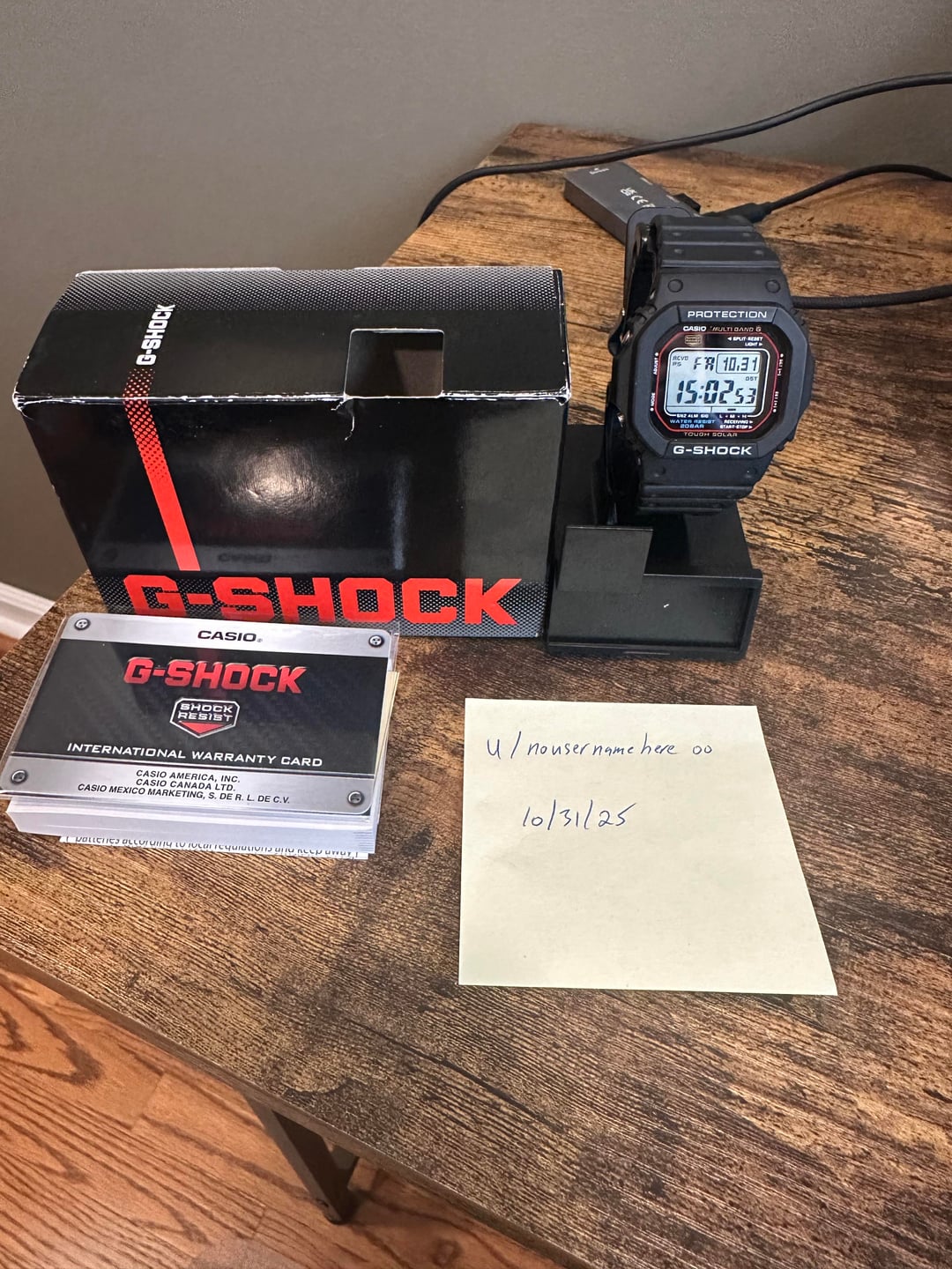 Includes original box, manuals, and warranty card. The watch has been worn less than a handful of times and remains in near-new condition with no noticeable marks or wear. All functions (Multi-Band 6 atomic timekeeping, Tough Solar charging, world time, stopwatch, countdown timer, and alarms) work perfectly. Looking for $85 FIRM.....includes CONUS shipping and payment method is zelle or PayPal F&F. Timestamp: [https://imgur.com/a/EYXmTdf](https://imgur.com/a/EYXmTdf)