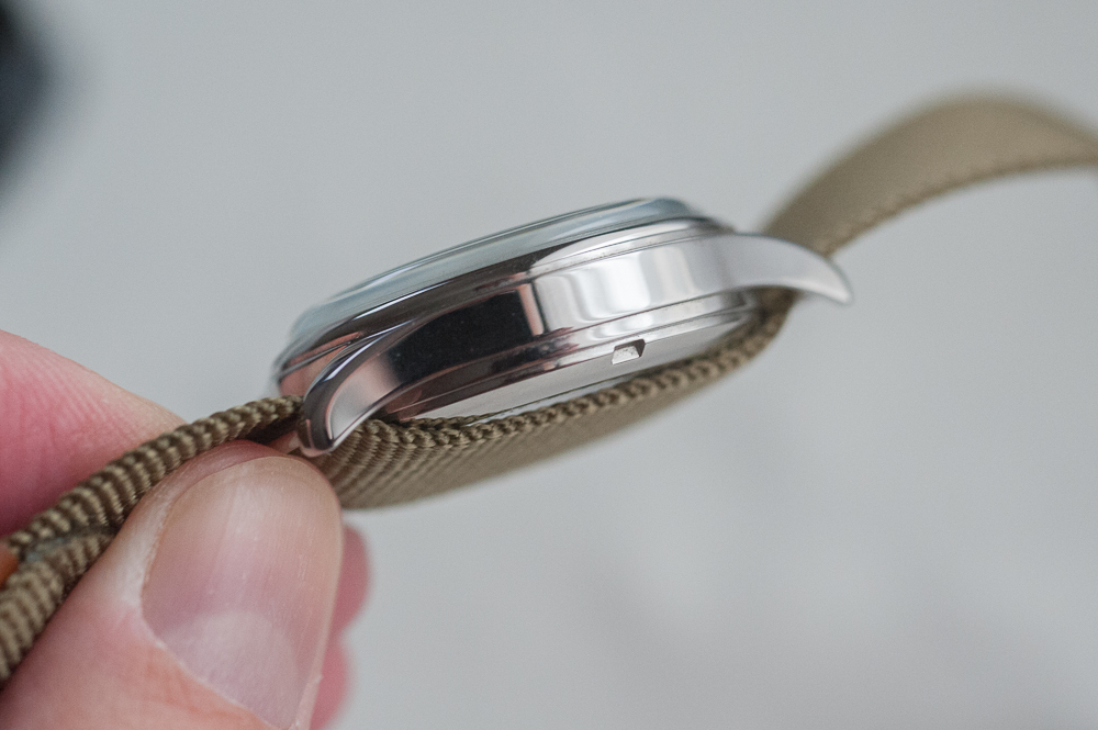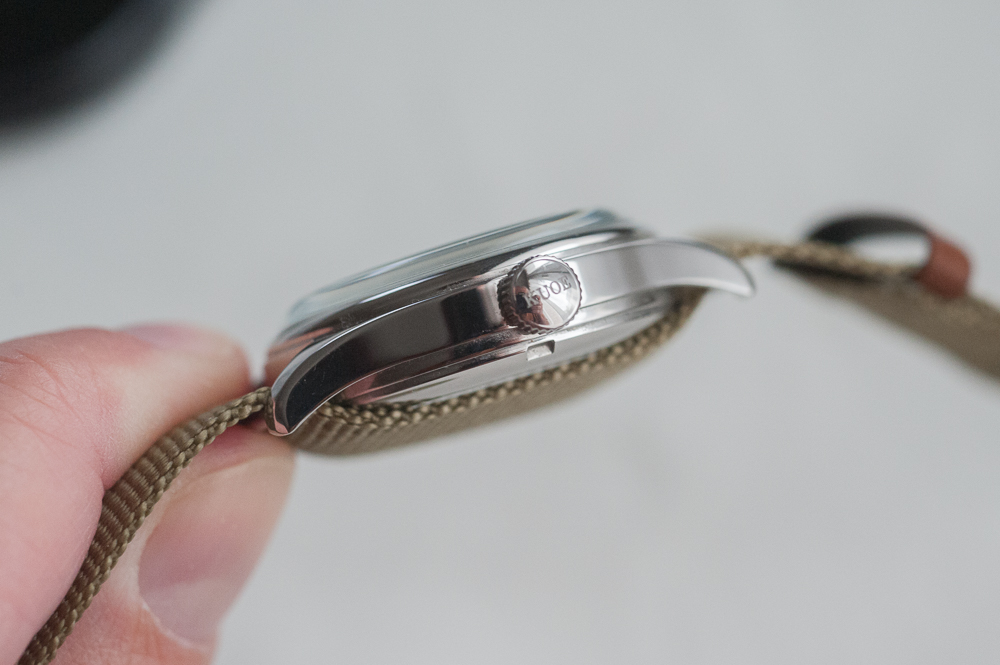 Elle date de septembre 2022 et ne présente aucun défaut sur le boitier ou le fond de boite mis à part de légères micro-marques d’usage. Elle a été portée occasionnellement. Ses deux bracelets tissus, noir et olive, sont en très bon état. Le Seiko NH-38 tourne comme il se doit et son remontage est fluide.