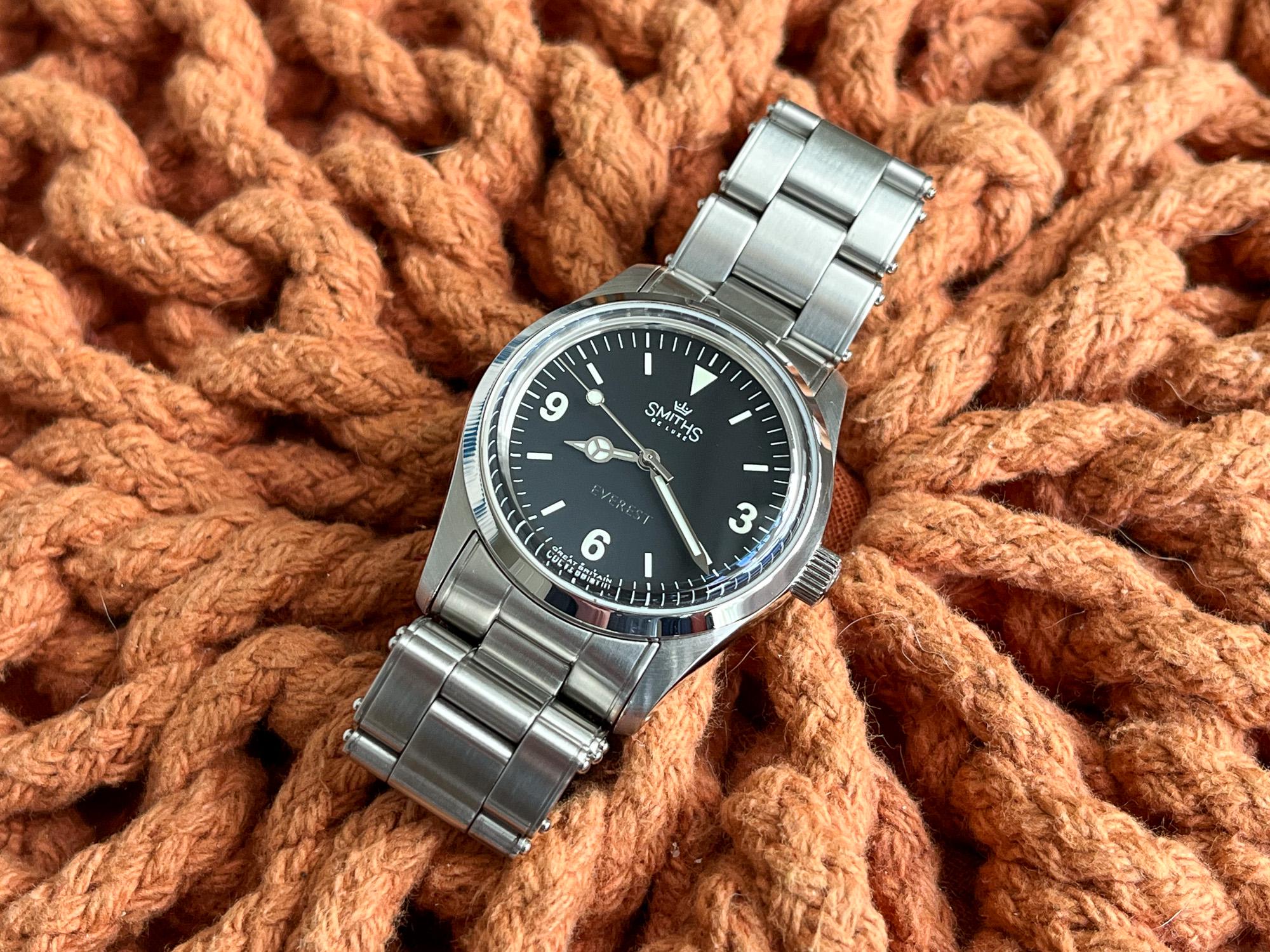 Selling my black dial 36mm Smiths Everest PRS-25 in great user condition. It runs well, the glass is very clean, and the dial looks perfect. A little wear on the sides of the case and some scuffs on the bracelet. Sale includes the watch (sized for my 6.5" wrist), four extra links, original paperwork, and the soft case from Time Factors. Watch is located in Colorado. Asking $525 shipped anywhere in the Lower 48. **Photos and timestamp are** [here](https://imgur.com/a/3deVo8B)**.**