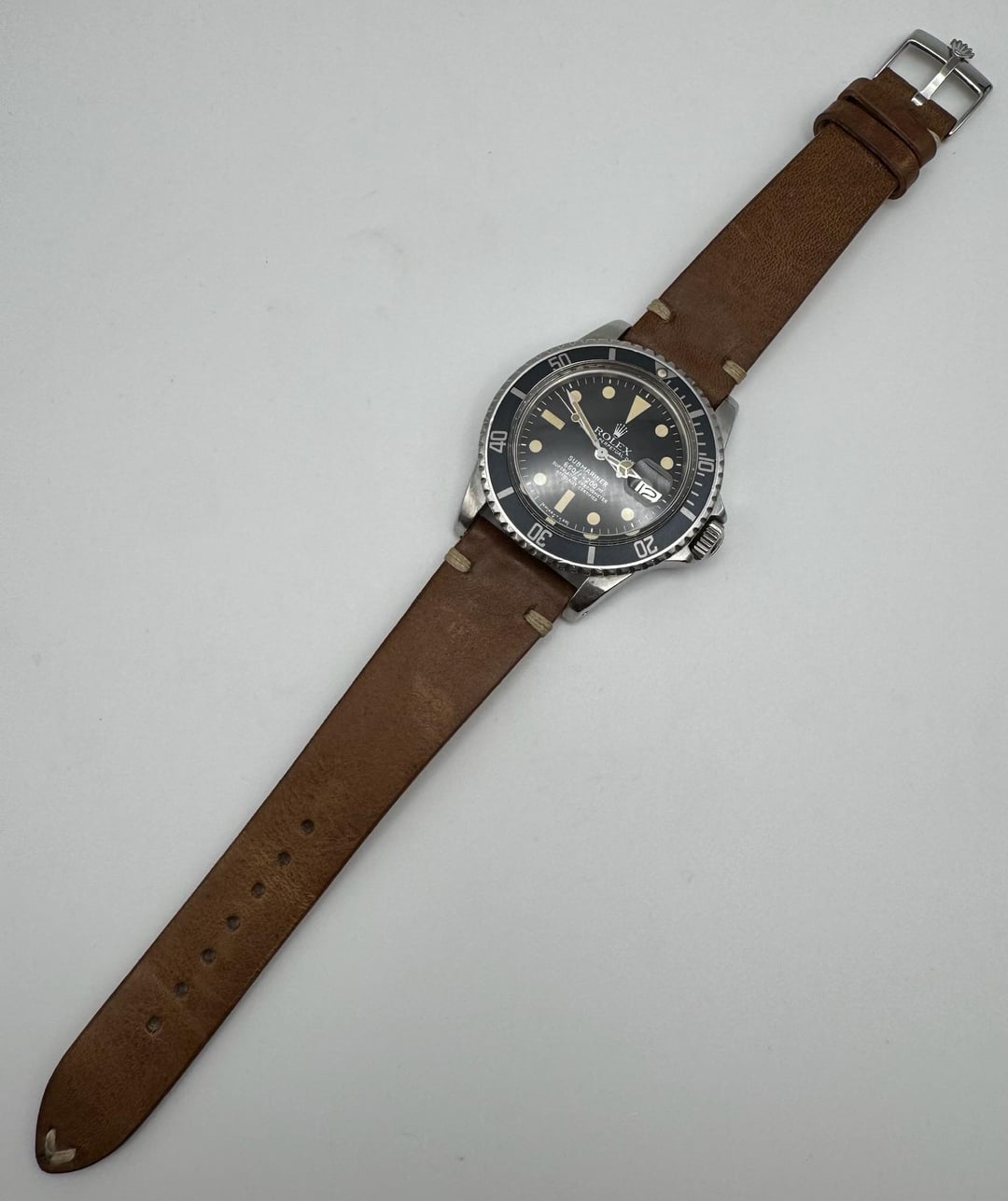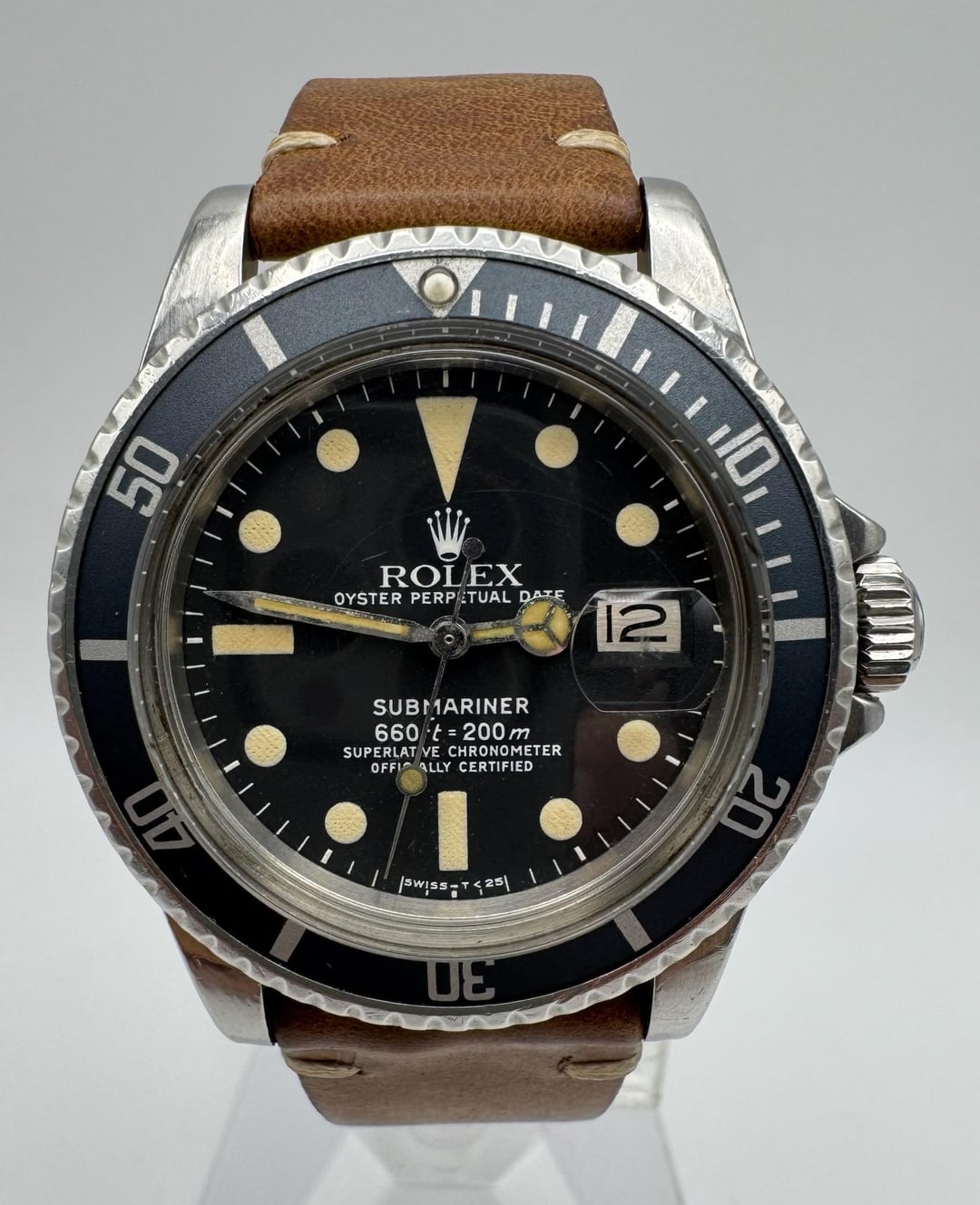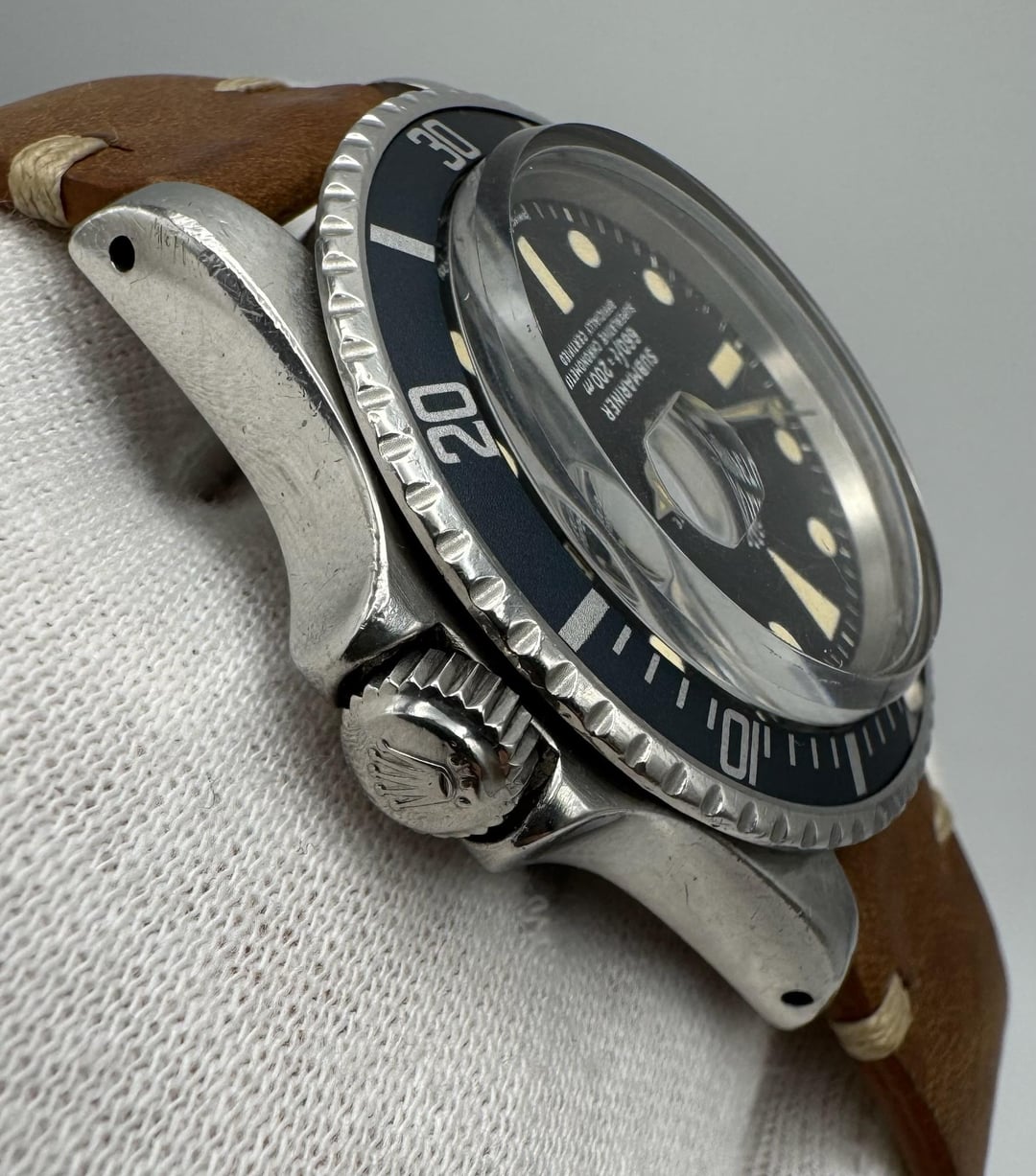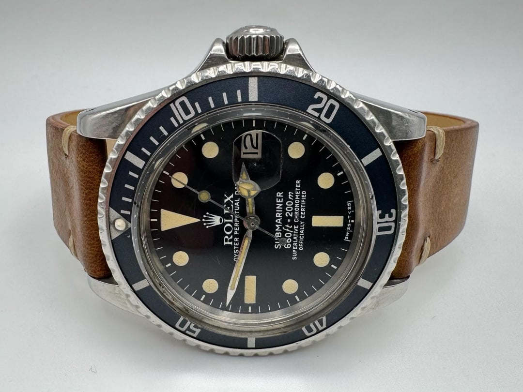 Rolex Submariner Date 1680, presented in all original condition with strong vintage character. The stainless steel case shows natural signs of wear and surface scratches but retains thick lugs with well-preserved proportions, suggesting it may or may not have been polished in the past. The standout original MK1 dial is exceptionally well-preserved, featuring an attractive yellow patina across the indices with perfectly matching aged hands. The insert displays a unique blue hue under certain angles, complementing the overall look of the watch. The crystal remains very clean with only minimal marks. All case numbers are sharp and fully visible, with a serial in the 5 million range dating back to 1977. The movement was professionally serviced in September 2025, runs accurately, and has been pressure tested to 3ATM (30m). The watch is paired with a new 20/16mm handmade vintage brown ammo leather strap, fitted with a Rolex steel pin buckle. A highly appealing vintage Submariner Date 1680, combining originality, character, and excellent overall presentation. **Reference:** 1680 **Size:** 40mm **Year:** 1977 📜 Includes: Custom [travel pouch](https://bogossia.com/products/travel-carrying-case) ($50+ value) 💵 Price: $8,435 + FREE overnight shipping with FedEx fully insured. [Timestamp](https://imgur.com/a/mgkp2qA) 🔥 Follow us on [Instagram](https://www.instagram.com/bogossiajewelers) 📍 Location: New York 🔒 Authenticity: 100% guaranteed, buy with confidence. We have 150+ reviews on Chrono24 with 180+ transactions, and Excellent rating score on Trustpilot. Visit our [profile](https://www.reddit.com/u/BoghossianJewelry/s/vm81HAdB7o) for links and references. 📦 Domestic Shipping: Ships with FedEx overnight, within 24 business hours of payment, from New York, NY to CONUS. The shipment is fully insured against damage, loss or theft. 🌍 International Shipping: Incurs an additional $100. 💳 Payment: PayPal/CC (+4%), Web, or Face-to-face deal in NY. 🔐 [Seller References](https://bogossia.com/authenticity) 🔗 [Other Listings](https://www.reddit.com/u/BoghossianJewelry/s/vm81HAdB7o) 📸 [IG: @bogossiajewelers](https://www.instagram.com/bogossiajewelers)