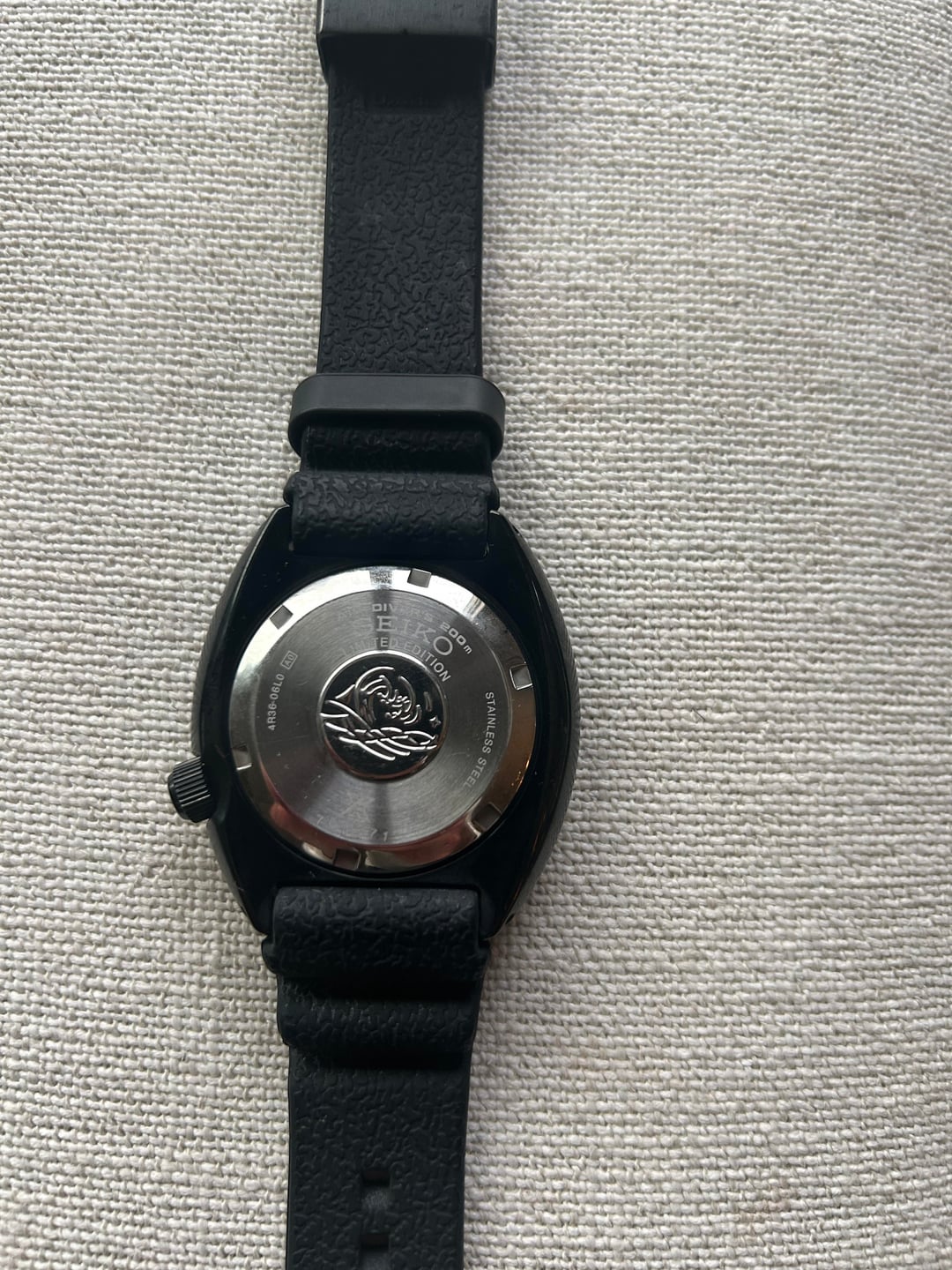 Hi watch friends, Seiko SRPC49K1 “Ninja Turtle” Dive Watch in great condition. This was part of a series of limited edition black series watches Seiko released in 2018. Watch is in great condition showing very little wear (minor scuff on metal part of bracelet). Fun article on this release of watches: https://www.fratellowatches.com/seiko-watches/seiko-prospex-srpc49-black-series-diver/#gref Watch comes with boxes and papers. Shipped conus only. Zelle or PayPal friends and family only. Price $599 As I have zero sales transactions here (have to start somewhere!) happy to have a chat over FaceTime or phone. Thanks!