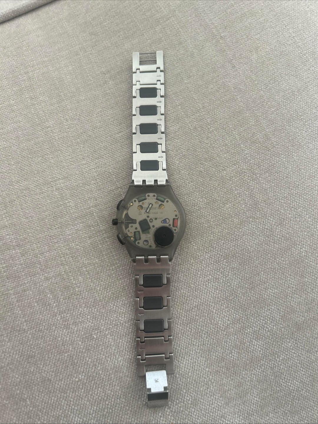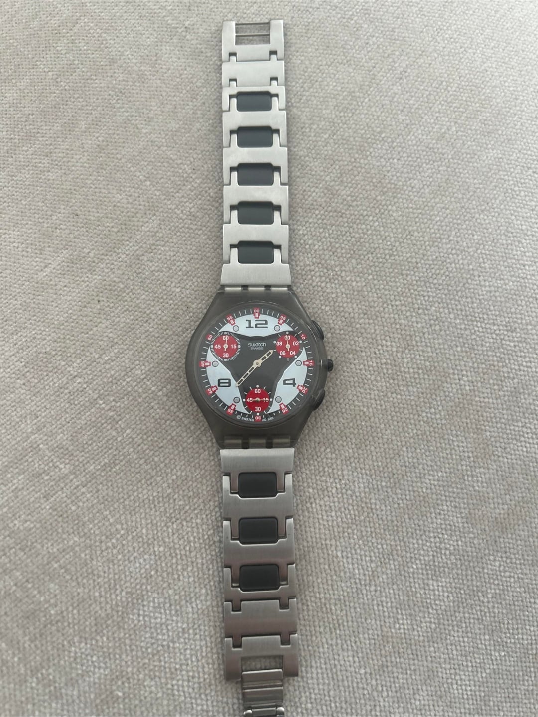 Vintage early 2000s (2003) swatch irony chronograph in mint condition. Bracelet fits 6.75 inch wrist. Fresh battery. $99 shipped. CONUS. Thanks!