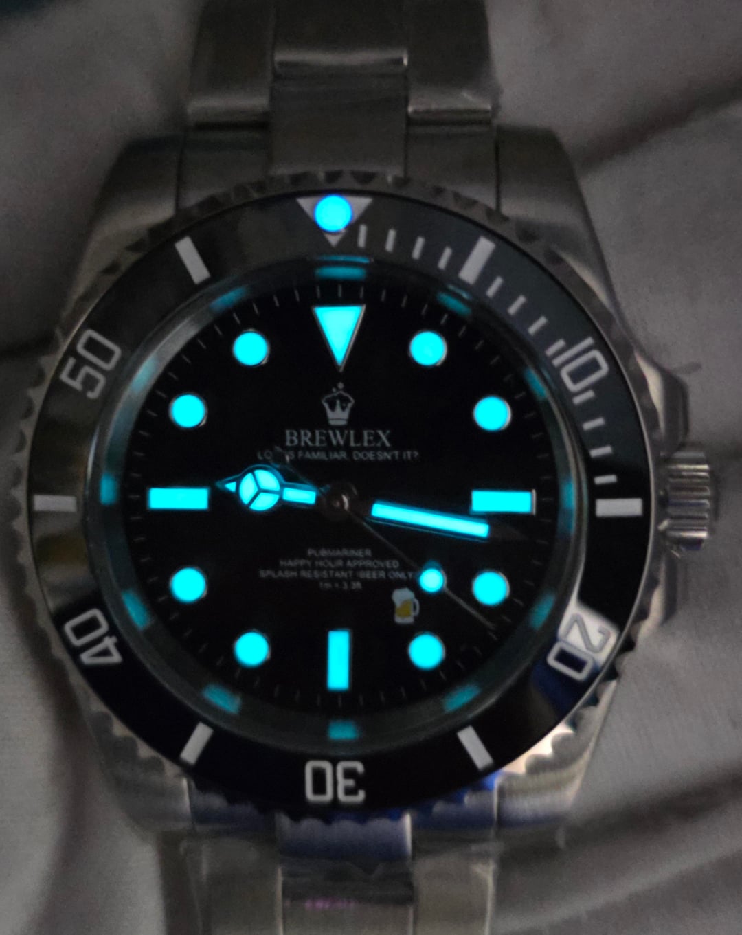 [WTS] New "BREWLEX" No-Date Sub NH35 Automatic w/ Signed Crown & Clasp, and a Beer Mug at 5 o clock