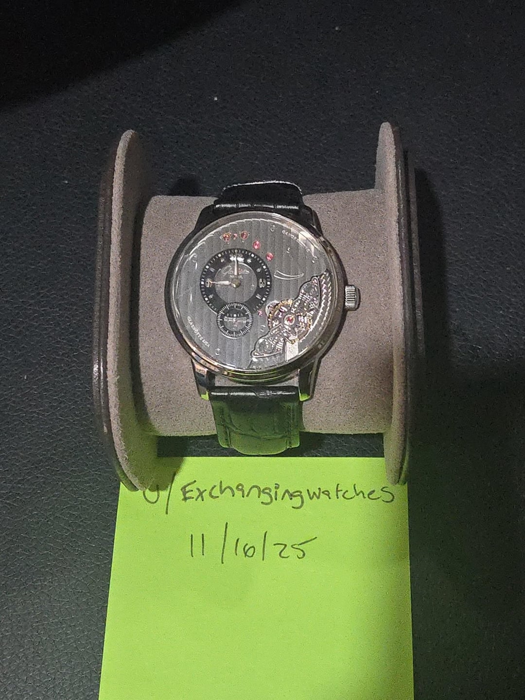 The modern PanoInverse showcases Glashütte Original’s movement finishing on the dial side, with the duplex swan-neck regulator and balance bridge proudly displayed on the front. This 2024 stainless-steel model has the updated architecture and darker movement tones, giving it a contemporary, technical look while retaining the signature elegance. The 42mm case wears refined and balanced, paired with a black alligator strap for a clean, high-end aesthetic. The last Panoinverse I had was the older model and it got crazy attention on here, so I’m very glad to have found another. Such a stunning piece and this one is in like new condition. 8,200 including insured shipping. No trades please