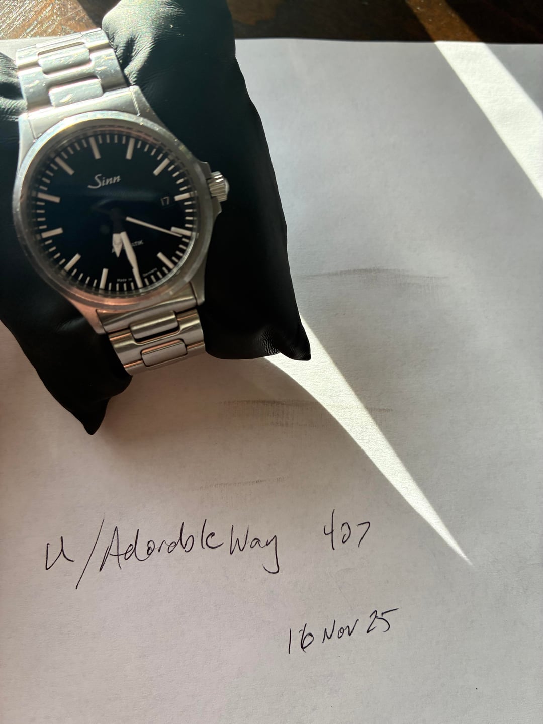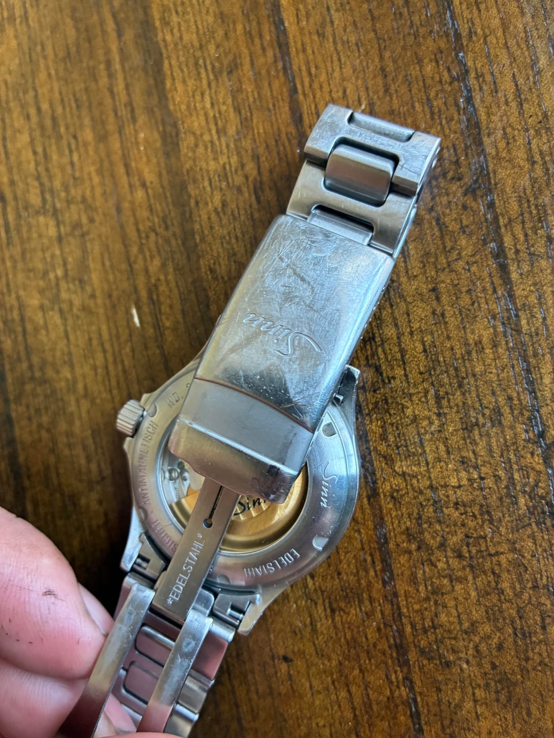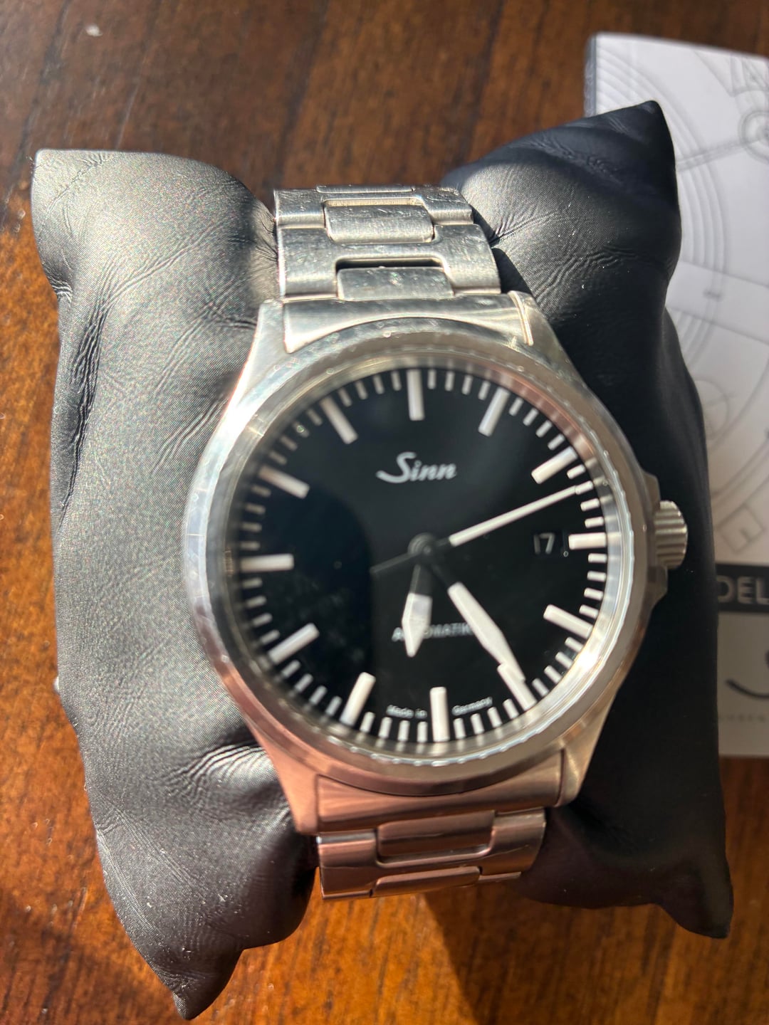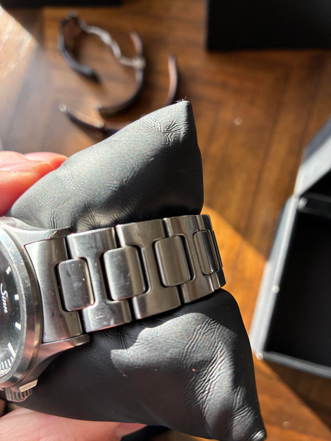 Selling a Sinn 556i Full Kit with H-link bracelet and two extra Sinn leather bands with a deployment clasp. $700 + Shipping. PayPal. If you want a Sinn watch for less, this watch is for you. Yes it has scuffs and scratches, which I’ve tried to capture in the photos, but it still looks great on the wrist. Additionally, the hour hand has light black scuffing on the Lume. It looks like paint transfer from the minute hand due to a possible drop from the previous owner. The lume still works well. Time is approximately +-8 to 10 seconds a day in my experience. Please let me know if you have any questions or concerns.