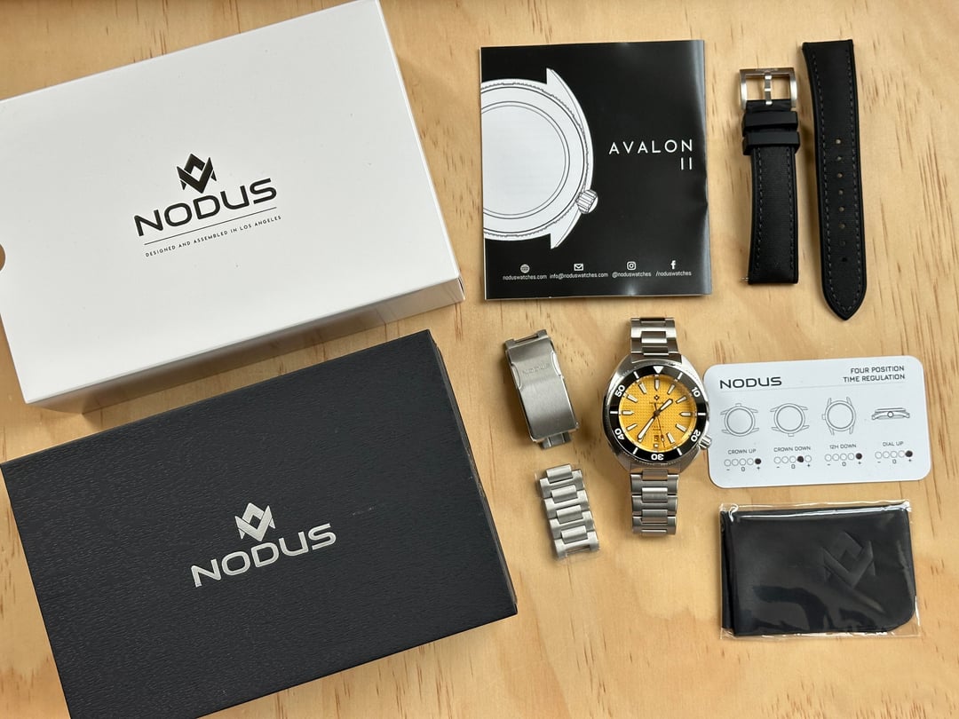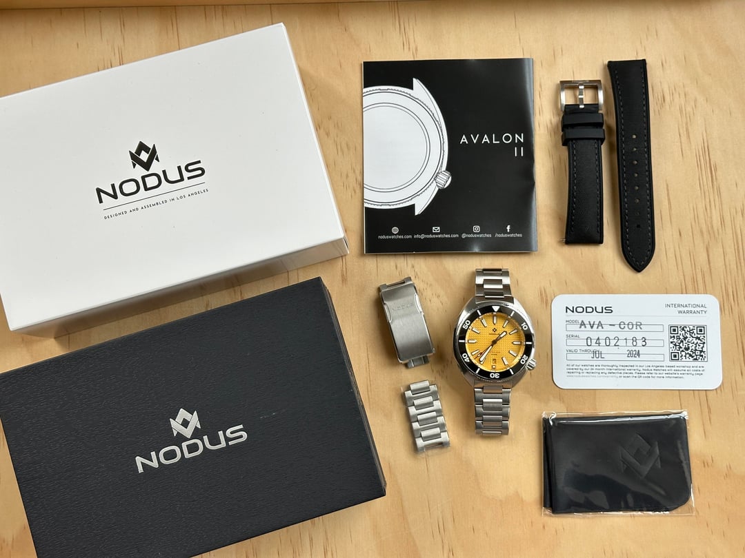 Discontinued Nodus Avalon II in Coral Yellow. Full set with bracelet and Nodus hybrid strap. Excellent overall condition with very minor signs of wear. $495, USPS shipping included. CONUS only. Zelle or PayPal F&F accepted. New to Reddit, but have sold plenty of items via eBay and IG under @usedwatchstuff. Follow my newest IG @centralvalleytime for more. Please let me know if you have any questions or need additional info. Thanks for stopping by!