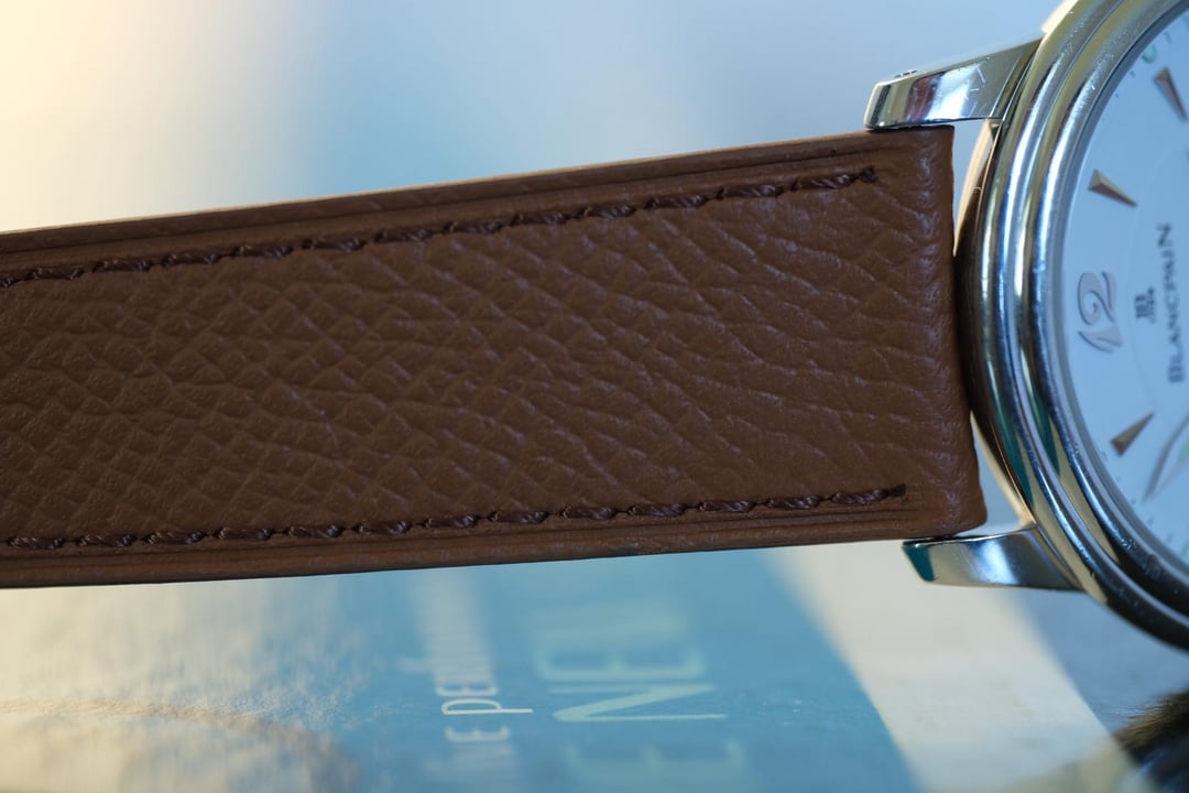 *BUY WITH CONFIDENCE, NEARLY 300 GLOWING REVIEWS!* Hitting that same daily sweet spot as a Datejust while stepping a little outside the box with a historic brand (as in the oldest existing watch brand!) the Blancpain Villeret has a lot to offer. Especially this ref 1106 Ultra Slim with power reserve indicator, 100 hour movement, and gorgeous Breguet numerals! REFERENCE: 1106 DIAL: Classic matte white dial with a mix of applied polished markers and Breguet numerals and a nice amount of lume - this one’s classic BP with a little extra sauce! Appears mint, including the sapphire crystal. CASE: 36MM stainless case is all class, perfect for daily wear yet slim enough to dress up. Sharp lines throughout, including the stepped bezel. Looks to be unpolished so naturally has wear but all in looks fantastic and super comfortably, I’d say feels closer to 37MM or 38MM given the design, photographed on my 6.6 inch wrist. MOVEMENT: Legendary handwound 100 hour power reserve! Recently serviced by the previous owner, winding and setting smoothly, with quick set date snapping over perfectly and running strong. STRAP: New brown leather strap complete with its original Blancpain stainless pin buckle. ACCESSORIES: Watch only. PRICE: $4450 which will include 2 day fully insured shipping through FedEx anywhere in the US. Face-to-face in the Los Angeles area always possible, with a small discount offered. Payment via Zelle or Bank Wire. No returns unless misrepresented and it absolutely will not be, I am a passionate collector first and foremost and I go out of the way to treat buyers the way I want to be treated and I’m the buyer. Lots of great feedback to show that. TIMESTAMP: https://imgur.com/a/3zOFxAC Follow me here and on IG at thewriteroftime for more cool watches! Thanks! Richard