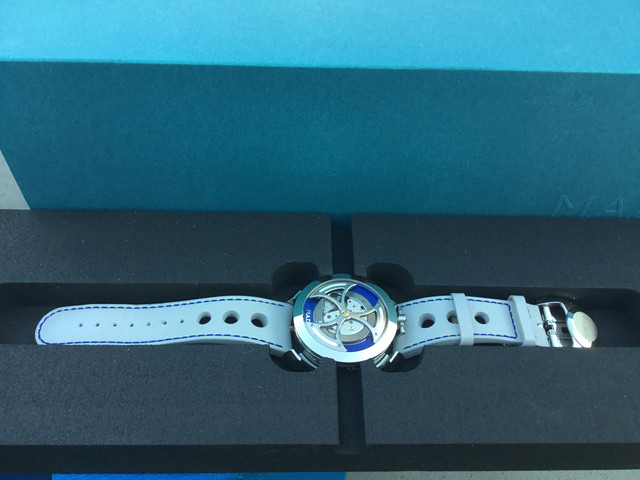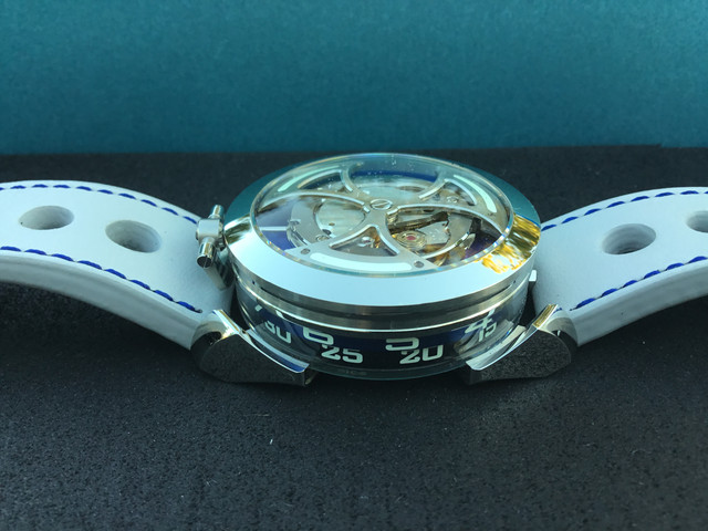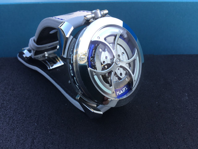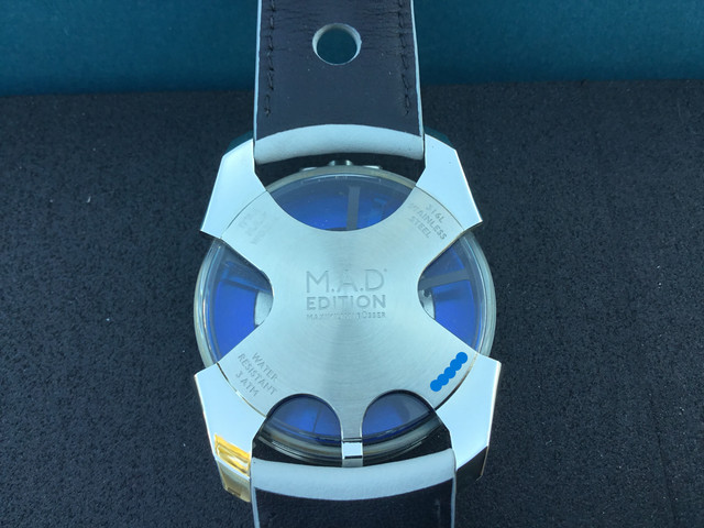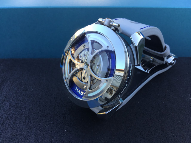 "The M.A.D.1 was conceived with the same amount of creativity as an MB&F Machine, but with an additional constraint, which one could argue is even more challenging: the affordable price point. Developing a movement from scratch would clearly have been too expensive, so modifying a tried and proven base calibre was required. Among a few potential candidates, the Miyota 821A movement was chosen for its unidirectional winding system – essential for easy and high-speed rotation of the winding rotor, a key element of the M.A.D.1 design."