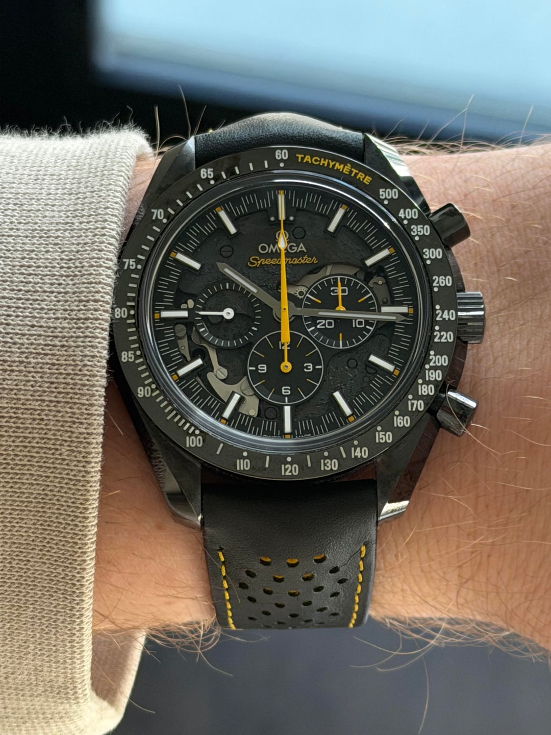 Omega SpeedMaster Dark Side of the Moon 311.92.44.30.01.001. Box & papers. 2019 Full-ceramic case & buckle. Stunning condition! **$7999** / Zelle, Venmo, or WU accepted. Timestamp: https://imgur.com/a/ka8atHb I have tons of references on multiple platforms including WatchExchange. I am more than happy to show these.