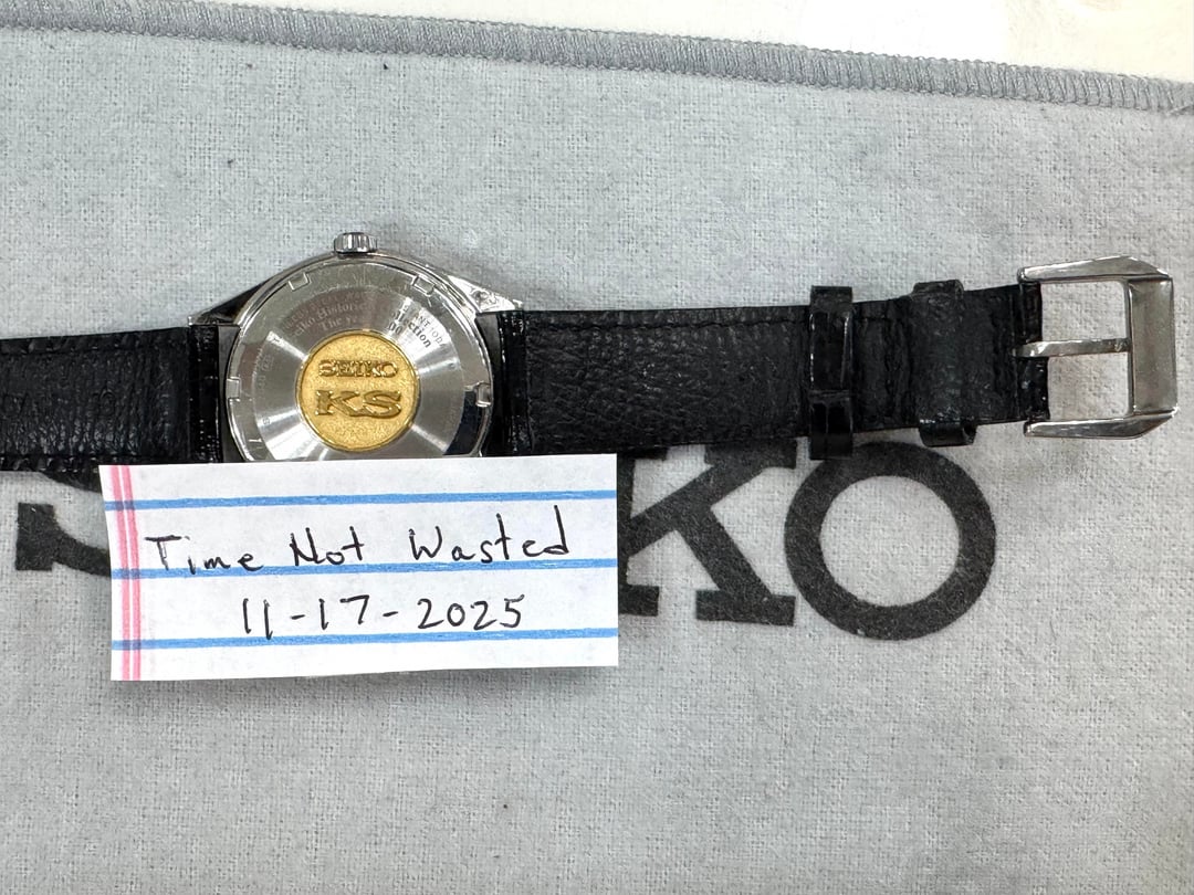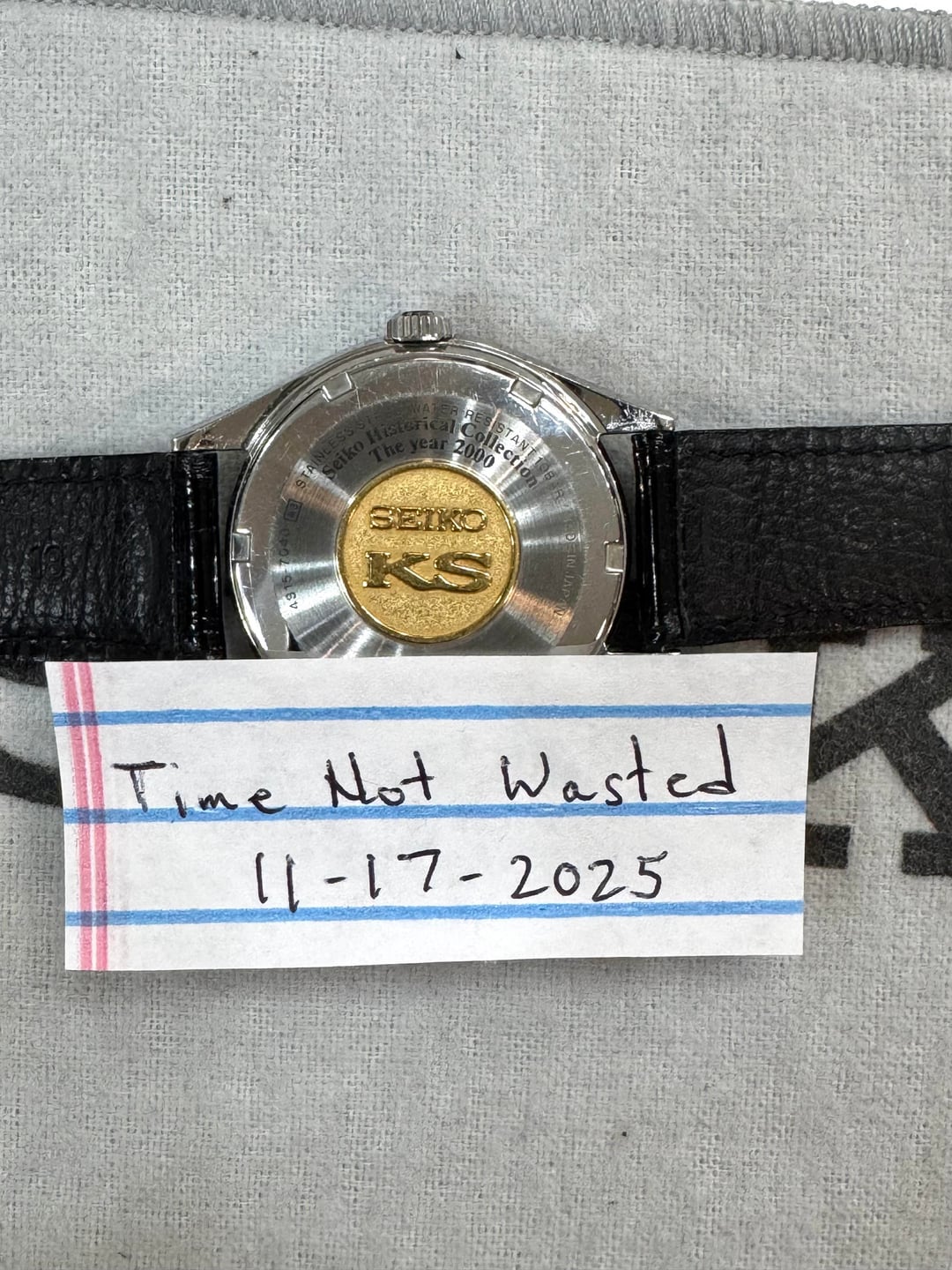 It’s the Seiko SCVN001, released in August 2000 in a limited run of 2,000 pieces. The 56KS has often been celebrated as the best watch from the King Seiko vs. Grand Seiko era. Powered by the 4S15 movement, which was derived from the legendary 52 movement. A true reissue in terms of size, gold medallion, movement and design. True to Seiko’s Grammar of Design with 56KS case design! Currently running about +10 seconds a day. Aftermarket strap and buckle. Specs are as follows: * Case width: 37mm (w/o crown) * Lug to lug length: 42mm * Lug spacing: 18mm * Thickness: 10.5mm * Pre-owned condition * Movement: 4Hz 4S15 automatic * WR rating: 100m (not tested) * Blue Seiko box, no papers etc. * No trades, Only selling * Price is firm * Free Shipping via USPS within CONUS Priced to SELL: $1,050 shipped Payment: Venmo or Zelle Buy with confidence. Currently, 162 positive transactions on Reddit and counting. Happy to FaceTime with King Seiko in hand. Thanks & Happy Holidays.
