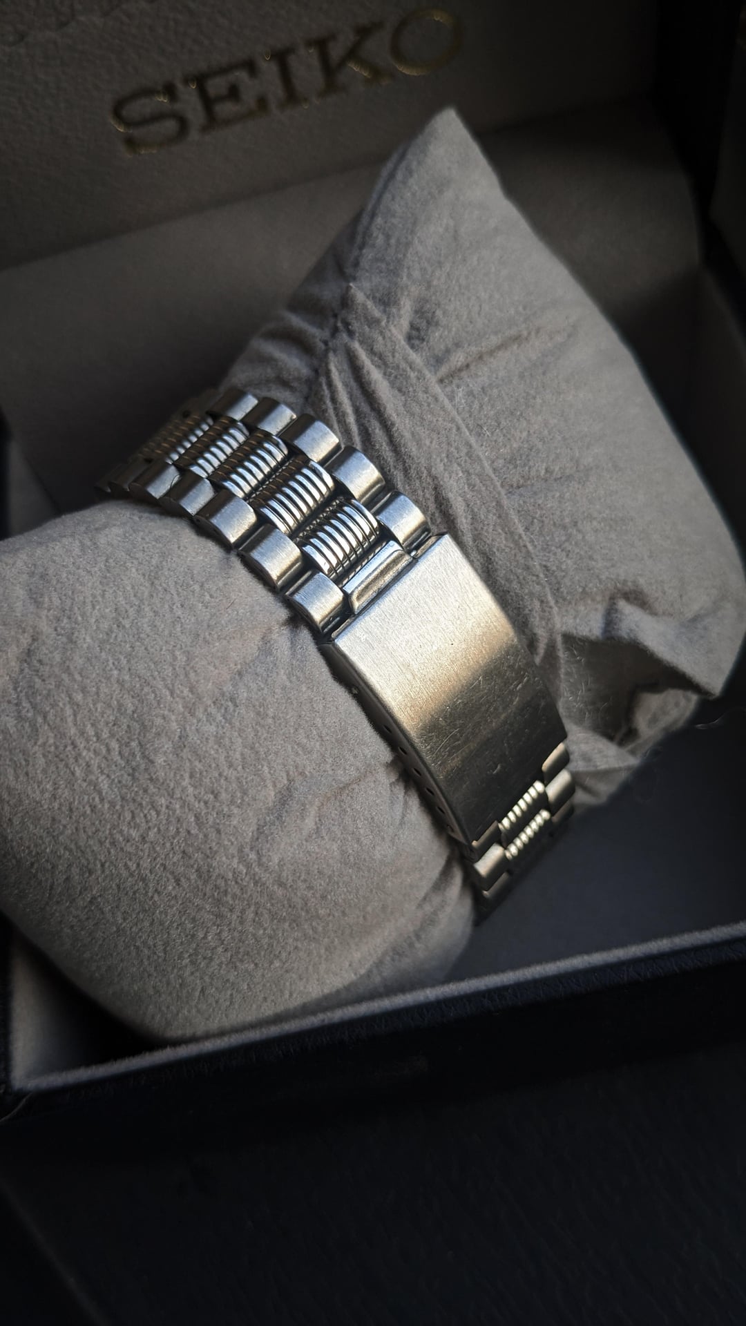 Hello WatchFam, A very beautiful early Seiko QR Quartz from February 1974. Fantastic condition Sunburst dial integrated with aftermarket Engraved bracelet. It have a Quartz movement 3863. The watch contains aftermarket bracelet and comes with an aftermarket Box. Watch reference number is 3863-7010 Quartz movement working fine (not serviced) Watch is in very good condition as shown in the pictures. And can be gifted to your loved ones Watch Measures are lug to lug 42mm with crown 36mm approx. bracelet can fit upto 7.8 inches approx Price $220 Timestamp: https://imgur.com/a/Nx91jsO