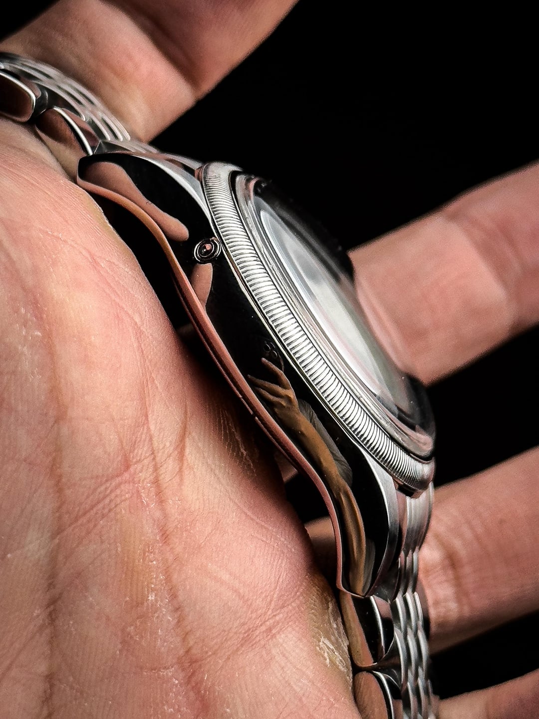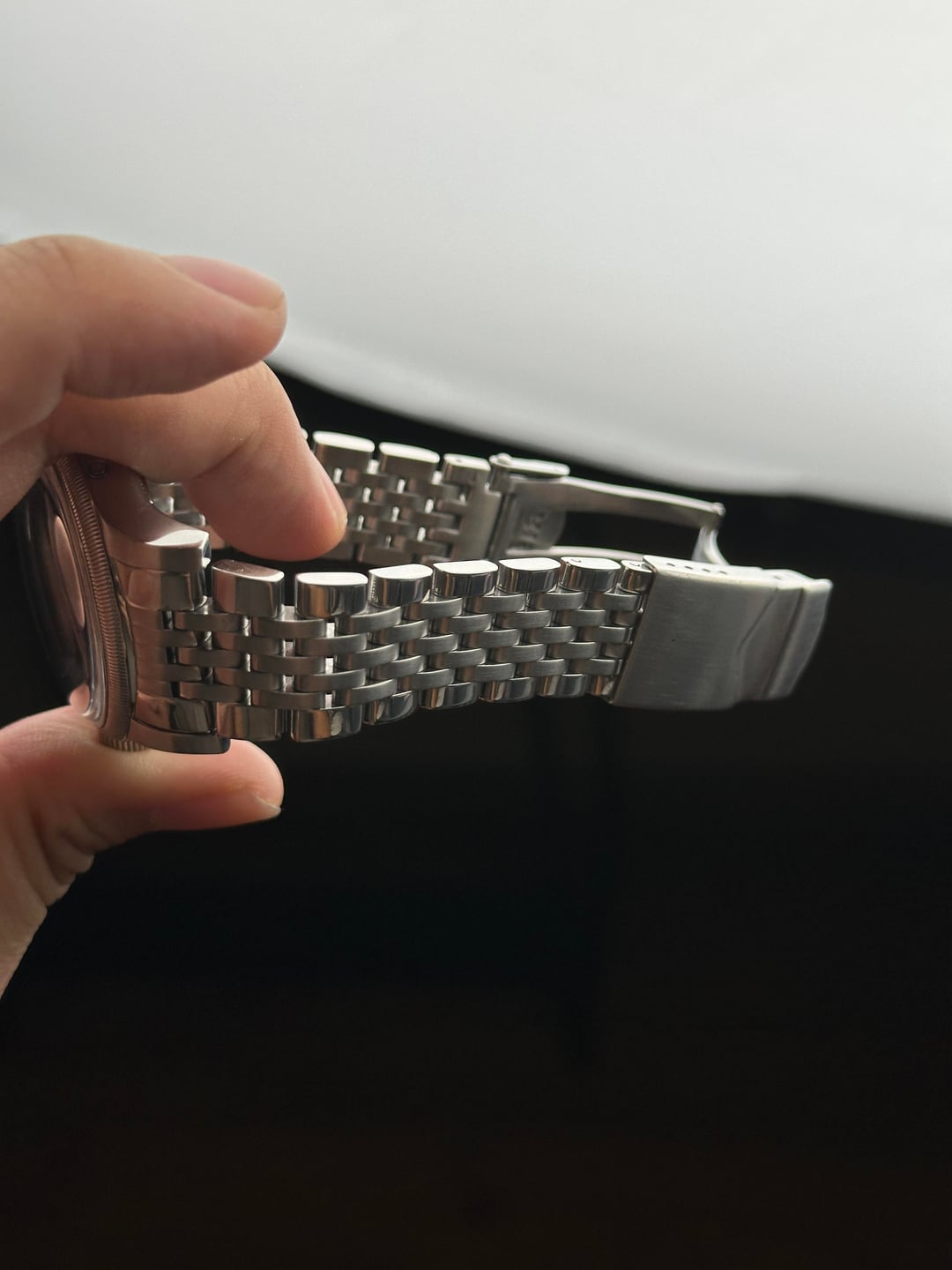 Up for sale is the Oris Big Crown Complication All Stainless Steel Moonphase 7566 38mm in excellent condition. Images: https://drive.google.com/drive/folders/1kwIpvAvPI9BLnHkXbX3UILmzFGlpuC0q Video: https://drive.google.com/file/d/1KeVf3KYTpV6WlB6HUmuxLCSQgWvyW170/view?usp=drivesdk Timestamp: https://drive.google.com/file/d/1py_gNxthUhoL64TnKevJG0r19OIDW7NZ/view?usp=drivesdk Oris is one of the well-known independent Swiss brands, and its Big Pointer Date design has been a staple of the brand since its introduction in 1938. Originally designed for pilots, the “Big Crown”—which gives the model its name—allowed for easy adjustments while wearing gloves. The Oris Big Crown Complication Moonphase, features a 38mm stainless steel case with a silver coin-edge bezel. The case measures 44mm lug-to-lug, 11.5mm in thickness, and has a lug width of 19mm. It is equipped with a domed plexiglass crystal and a screw-down exhibition case back showcasing the automatic Oris Caliber 581 movement, which offers a 38-hour power reserve and operates at 28,800 vibrations per hour. The guilloché dial includes rose gold-toned Arabic numerals and indices, with sub-dials displaying the day at 3 o’clock, a 24-hour second time zone at 6 o’clock, and the date at 9 o’clock. A moonphase indicator is positioned at 12 o’clock. The watch is water-resistant up to 50 meters. The watch is in excellent condition, with almost no scratches nor dents. The crystal is clear and clean, dial is flawless. It comes on the original OEM Oris bracelet that fits up to 19cm (7.5 inches). The movement has recently been serviced and is keeping excellent time at +/-5s a day. It comes with Oris box, and booklet. Price: $1500 + $60 flat shipping (via DHL/UPS express - tariffs/duty fee covered). Payment via PayPal F&F or G&S (+4.6% fee paid by the buyer). Not accepting trades. Feel free to message me with any questions or if you’re interested. Have a great day! Check out my other watches on Instagram: @jasonswatchcorner